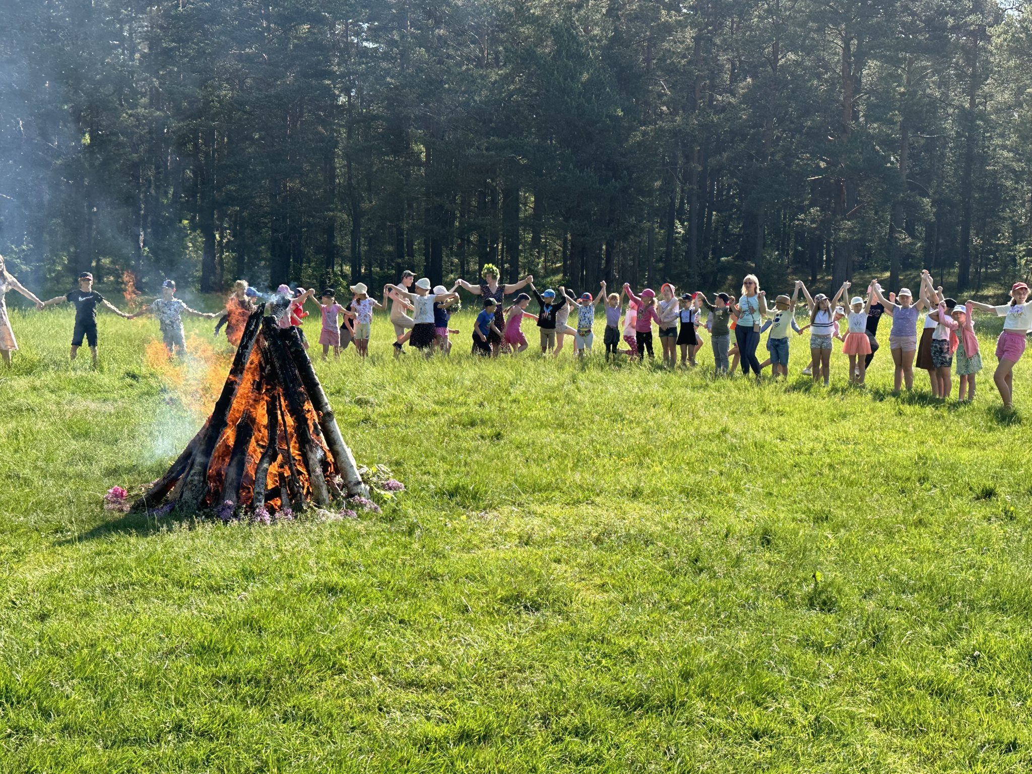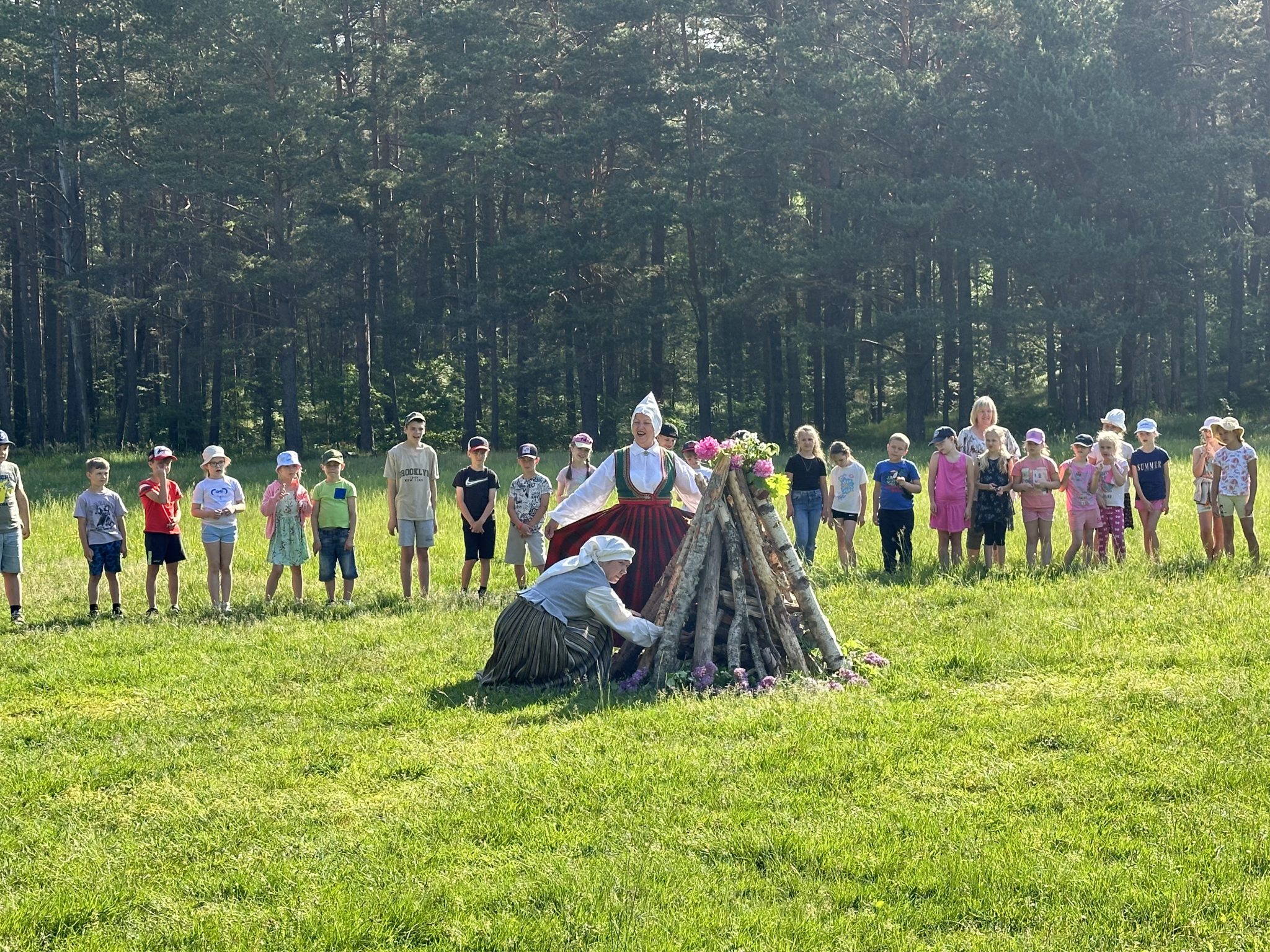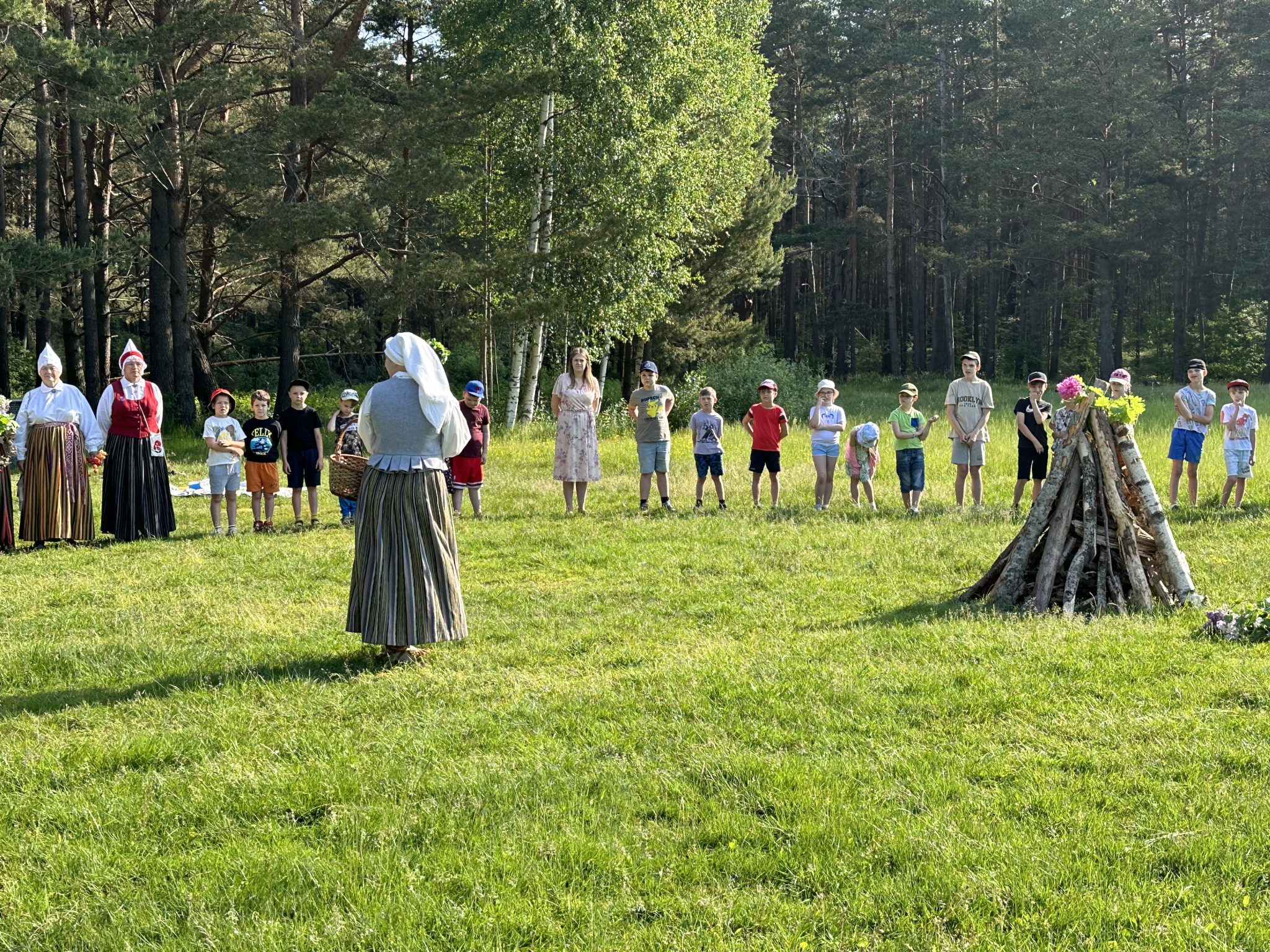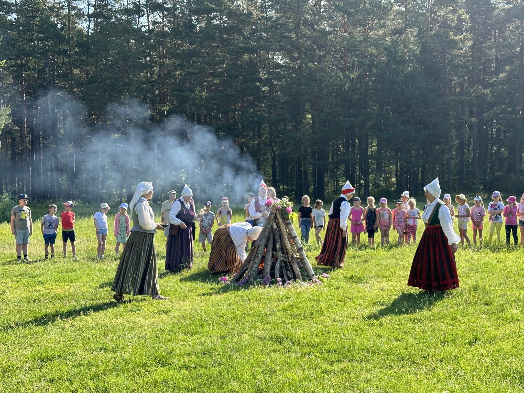 Mums palīdzēja folkloras kopa “Cielava”, ar kuru kopā mācījāmies kurt ugunskuru, izgreznot to, ziedot ugunij. Ugunskura izgreznošanu uzticējām Jāņiem, kuri to cienīgi arī izdarīja.