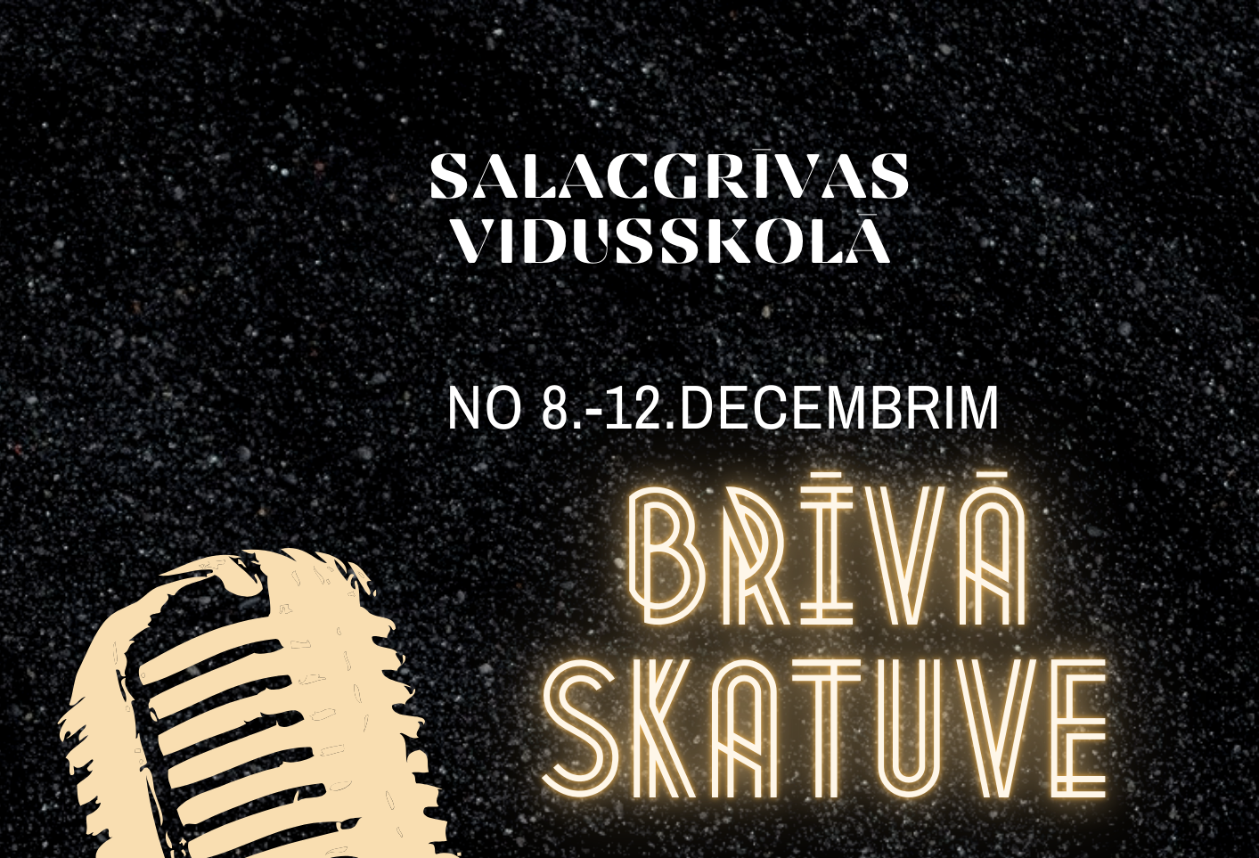 BRĪVĀ SKATUVE AICINA! Vai vēlies dziedāt, muzicēt vai lasīt dzeju? No 8.-12.decembrim Salacgrīvas vidusskolā 3. stāva vestibilā. Tā ir Tava iespēja uzkāpt uz