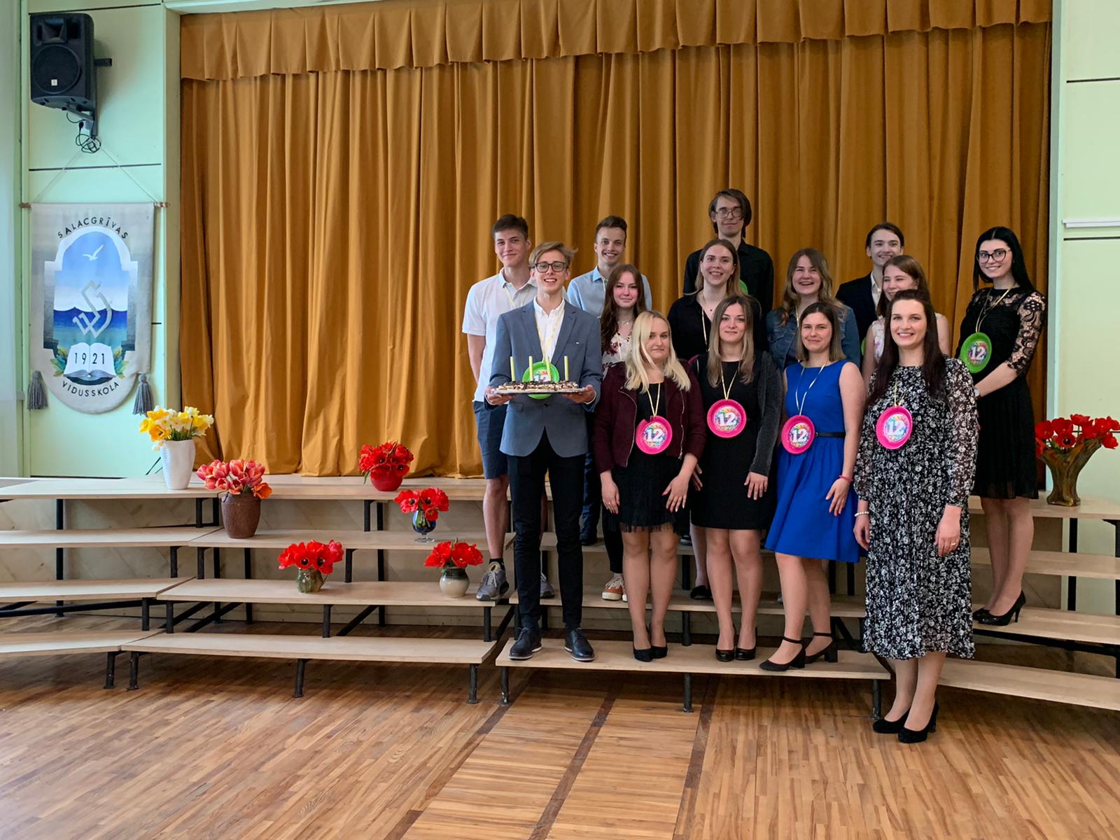 12.tie saņēma arī košas medaļas kā apliecinājumu 12 skolā pavadītiem gadiem ar skolēnu izvēlētiem citātiem un arī pašu gatavotu torti. Un drīkstēja iezvanīt skolas zvanu, izzvanot savus divpadsmit gadus Salacgrīvas vidusskolā.