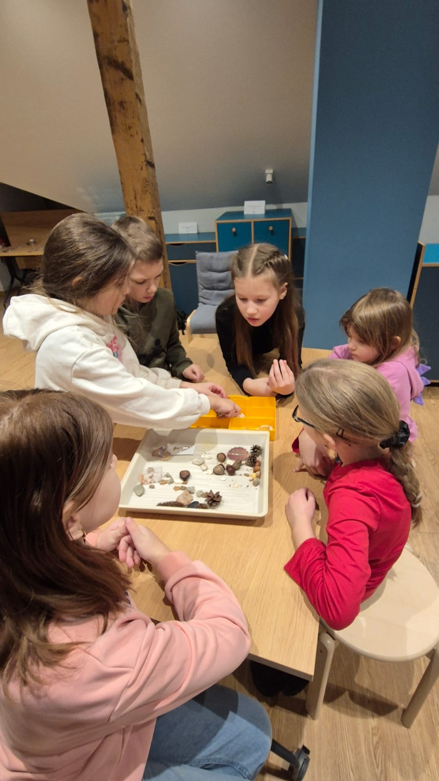 Nodarbības noslēgumā katrs varēja izveidot savu mini muzeju, sakārtojot priekšmetus pēc pazīmēm un klasifikācijas principiem — tā radās gan “dzīvnieku muzeji”, gan “akmeņu muzeji”, gan pat “īpašo lietu muzeji”.