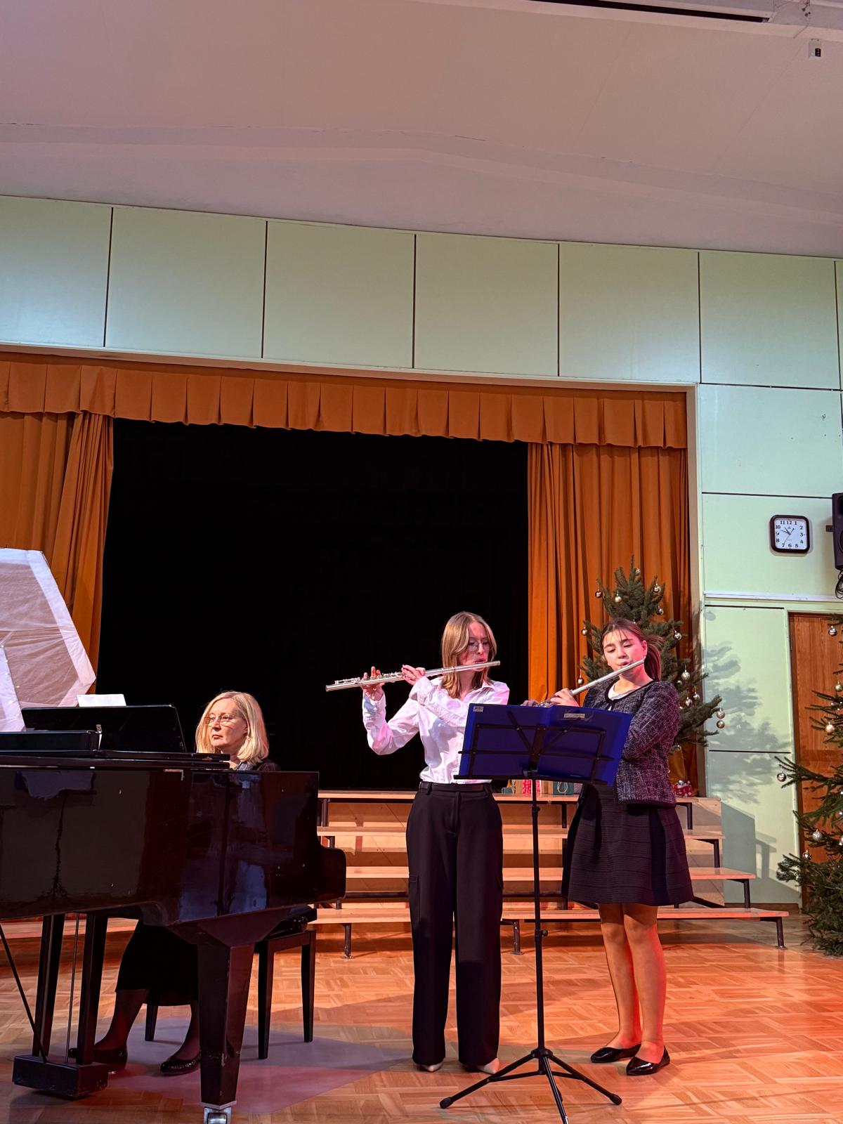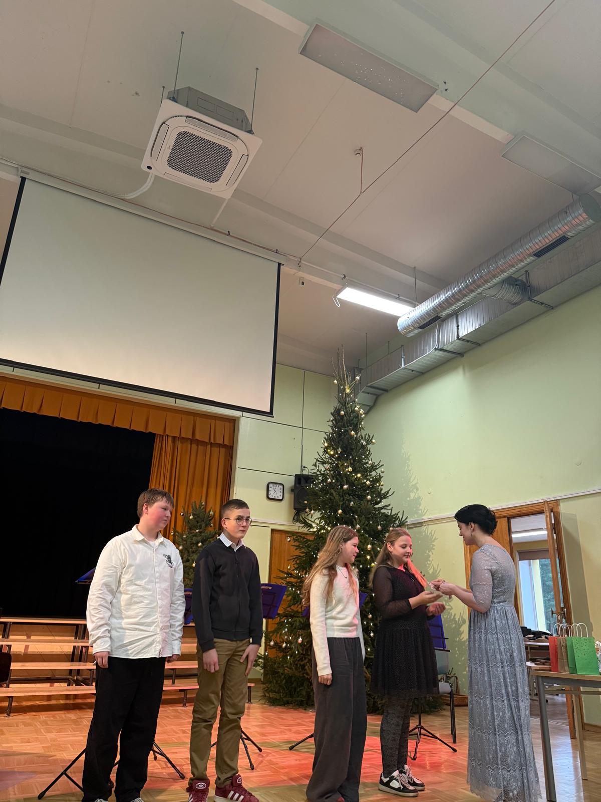 Par muzikālo baudījumu 1. semestra noslēguma pasākumā parūpējās Salacgrīvas Mūzikas skola. Sirsnīgs paldies talantīgajiem mūziķiem – Augustam Eizenbergam (5.a), Odrijai Bužai (5.b), Emīlam Kukulim (6.a), Albertam Treijam (6.a), Halinai Endei (6.b), Lotei Bergai (8.a), Kristiānai Reiziņai (8.b), Annai Viļļai (8.b) un Simonai Rutei Vilemsonei (9.b) – par skaistajiem priekšnesumiem un svētku noskaņas radīšanu.