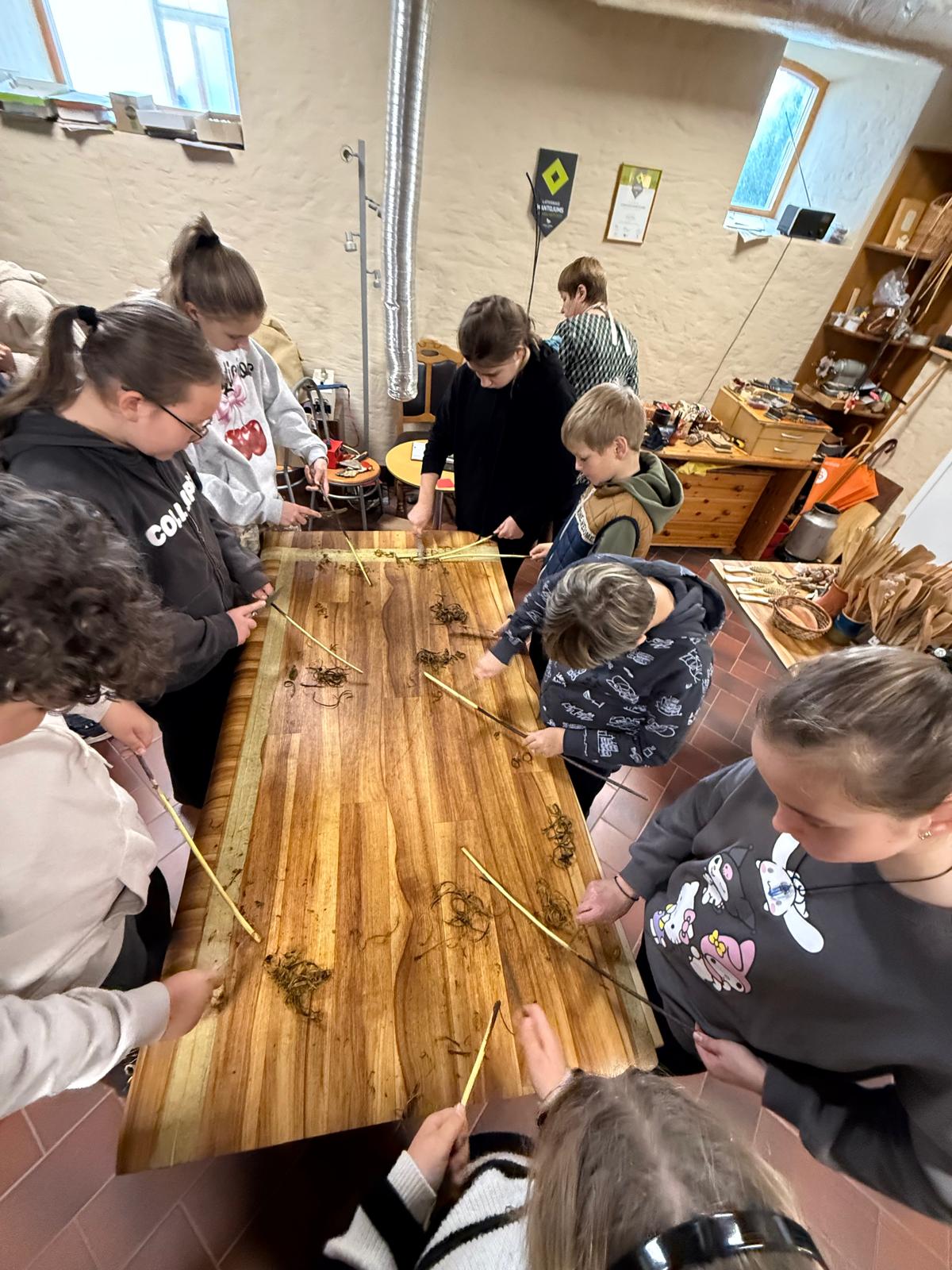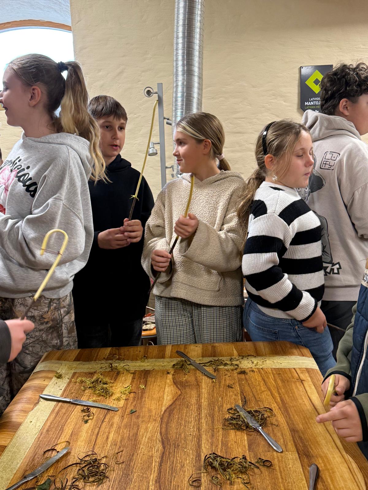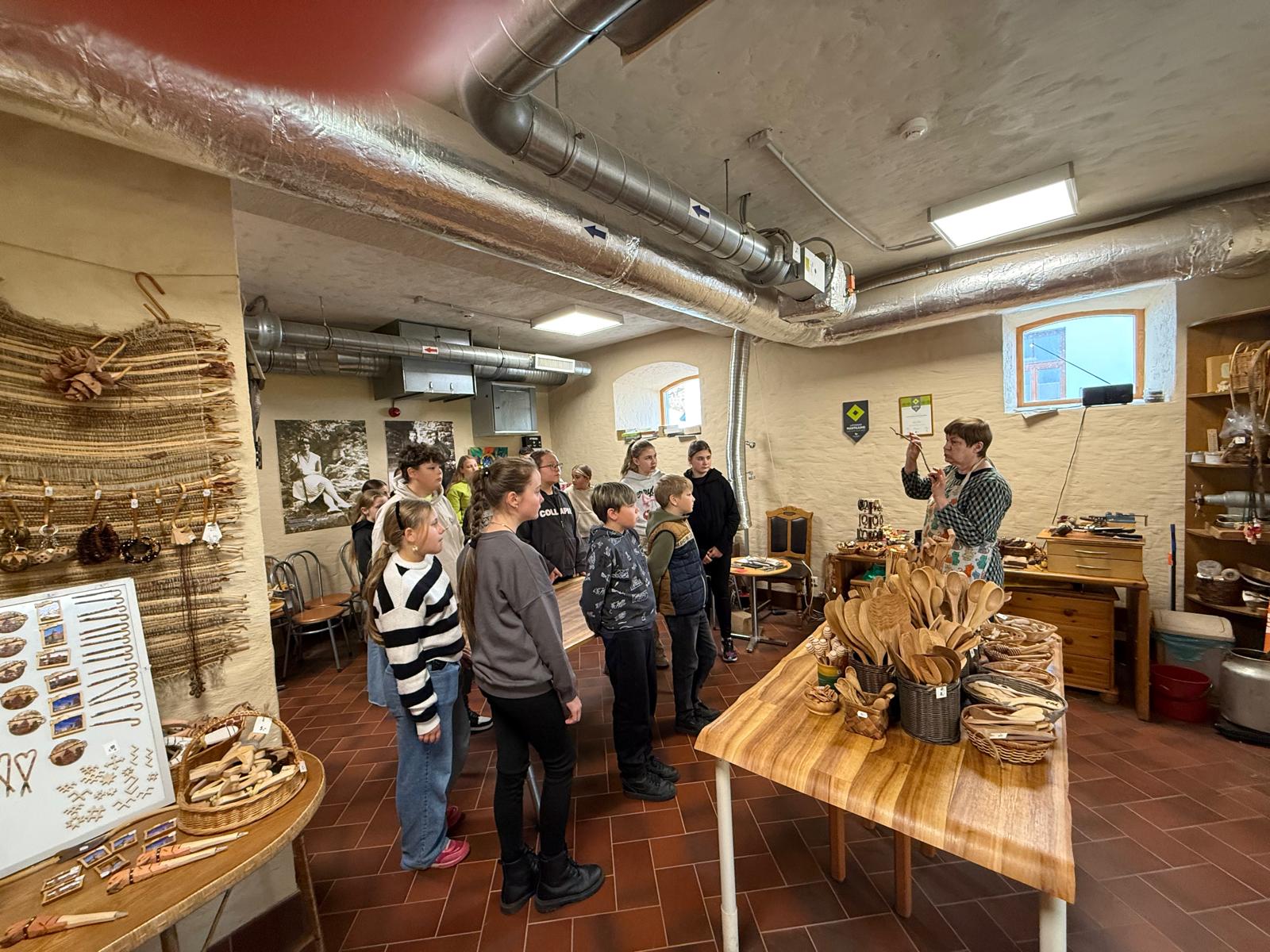 Ekskursijas sākumā iepazināmies ar Siguldas simbolu — slavenajiem spieķīšiem. Uzzinājām, ka spieķu darināšanai Siguldas apkārtnē ir vairāk nekā divsimt gadu sena vēsture. Mums tika parādīts, kā top šie spieķi — no vienkāršas koka nūjas līdz krāsainam, rūpīgi izlocītam mākslas darbam. Tā bija aizraujoša iespēja iepazīt vietējās tradīcijas un amatu prasmes.