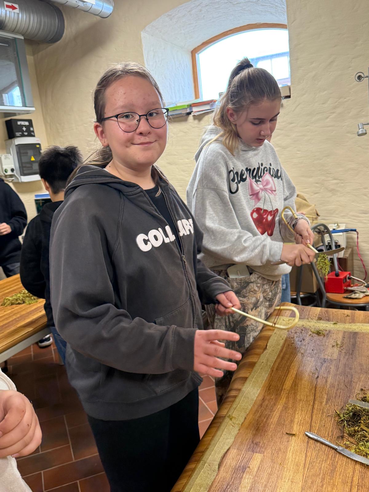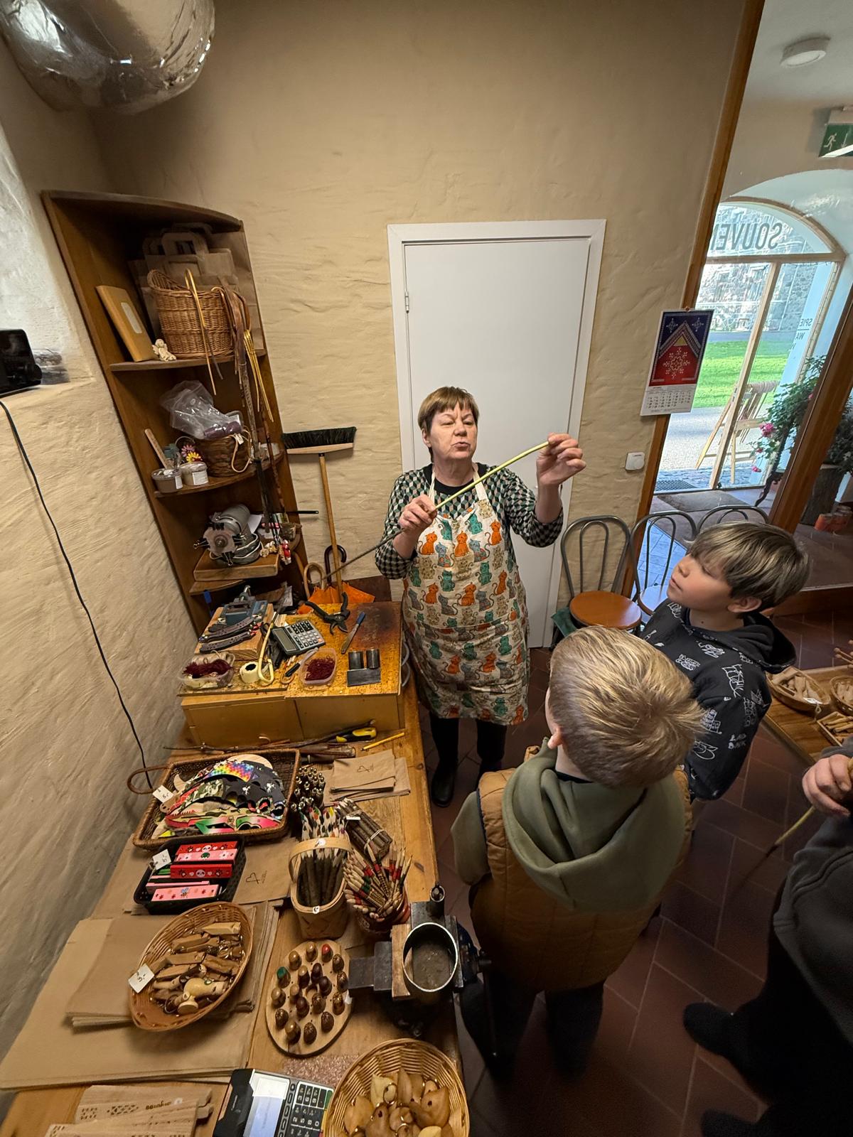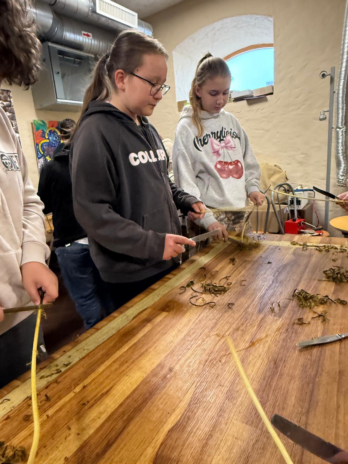 Ekskursijas sākumā iepazināmies ar Siguldas simbolu — slavenajiem spieķīšiem. Uzzinājām, ka spieķu darināšanai Siguldas apkārtnē ir vairāk nekā divsimt gadu sena vēsture. Mums tika parādīts, kā top šie spieķi — no vienkāršas koka nūjas līdz krāsainam, rūpīgi izlocītam mākslas darbam. Tā bija aizraujoša iespēja iepazīt vietējās tradīcijas un amatu prasmes.