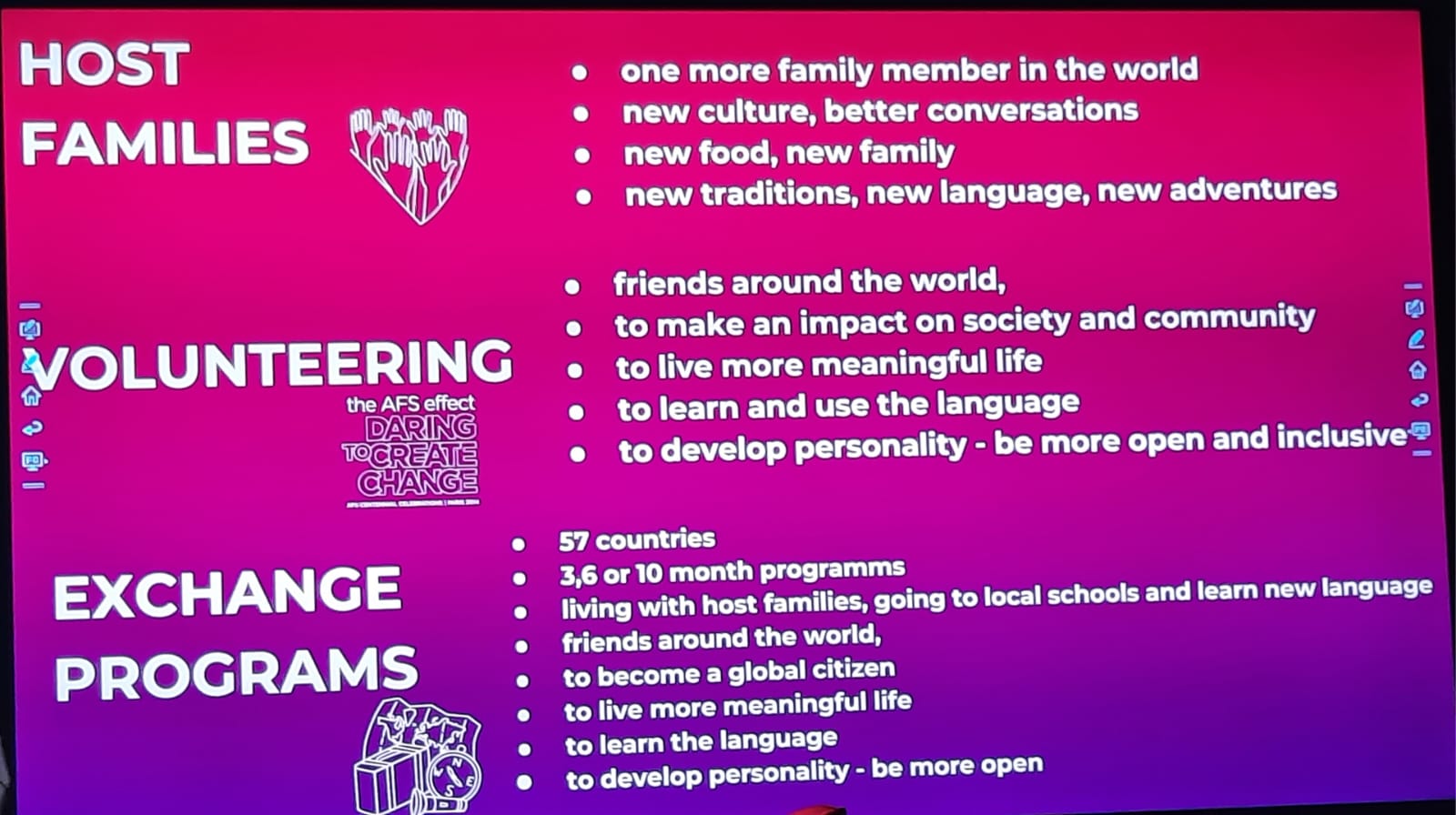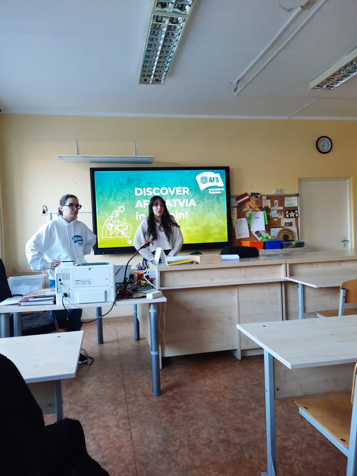 Trešdien vairākām klasēm bija tikšanās ar brīvpratīgajām no AFS, kuras iepazīstināja ar organizācijas darbību un iespēju kļūt par vienu no skolēniem vai arī brīvprātīgo.