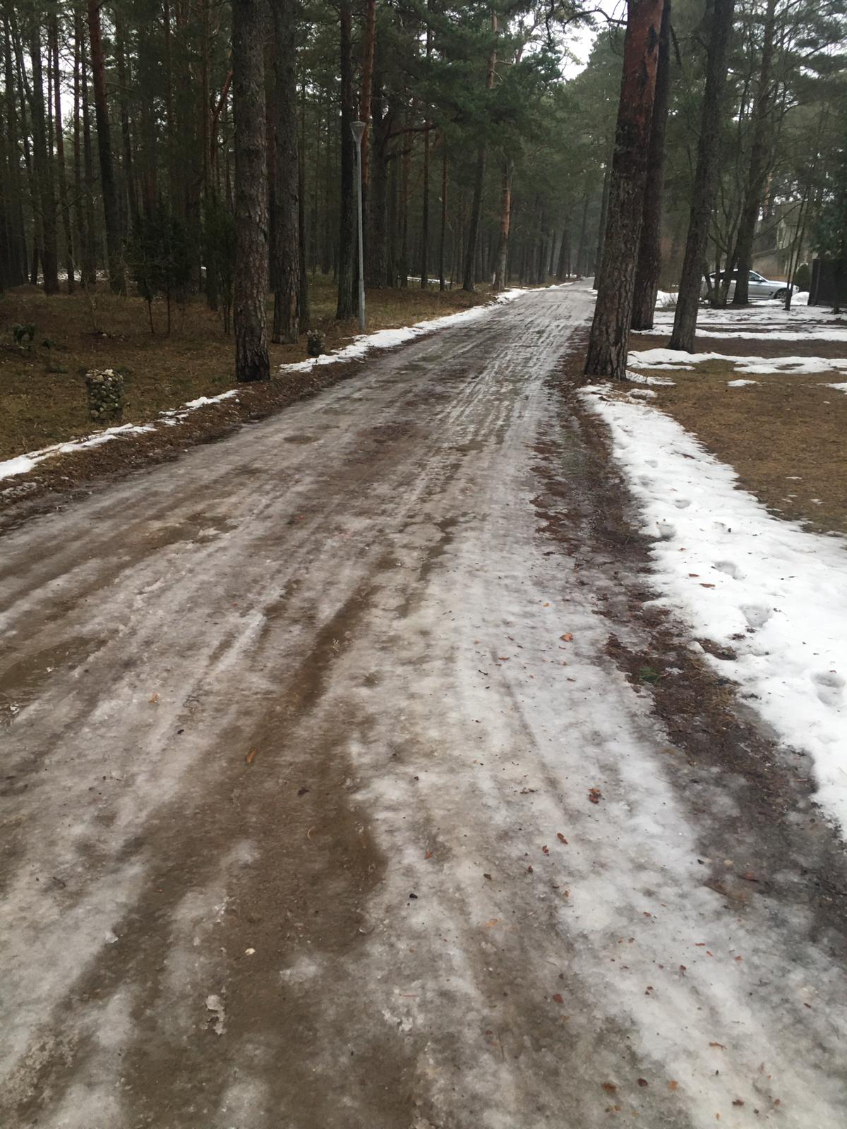 Ceļi un celiņi šoreiz tika notīrīti salīdzinoši ātri, bet, protams, izveidojās arī ledus, kur vajadzēja uzmanīties, lai nenokristu. Ceļš uz skolu slidenākajās vietās bija nokaisīts ar smiltīm.