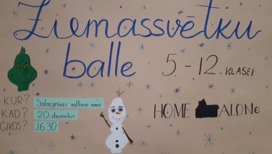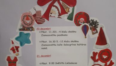 20.decembrī, plkst. 16.30, Salacgrīvas kultūras namā notiks 5.-12.klašu skolēnu Ziemassvētku balle ar priekšnesumiem no pazīstamiem Ziemassvētku stāstiem.