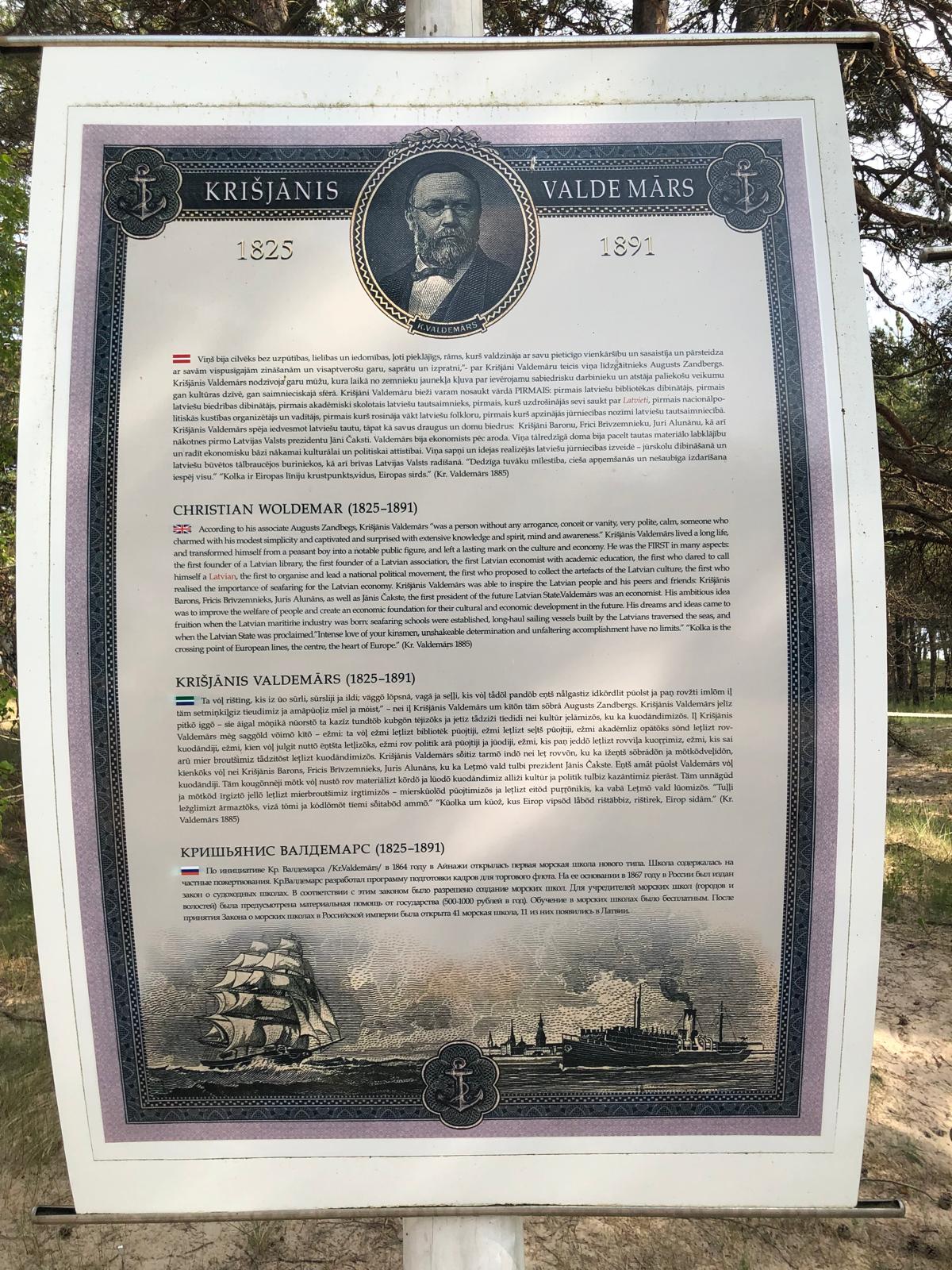 “Kad velkam uz Eiropas karti līniju no tālākā Eiropas zemes stūra pret ziemeļu rītiem, Karas upi, uz tālāko dienvidvakara stūri Kap St. Vincent Portugālē – un otru līniju no tālākā ziemeļu stūra Nordkap Norvēģijā uz tālāko dienvidus stūri Kap Matapan Grieķijā, tad abas šīs līnijas satiekas mūsu Baltijas jūrā netālu no Kurzemes Kolkas raga. Tad nu šinī vietā ir Eiropas vidus, Eiropas sirds. Eiropas sirds ir latviešiem it tuvu un skubina uz jūru viņu sirdīgākos dēlus!”