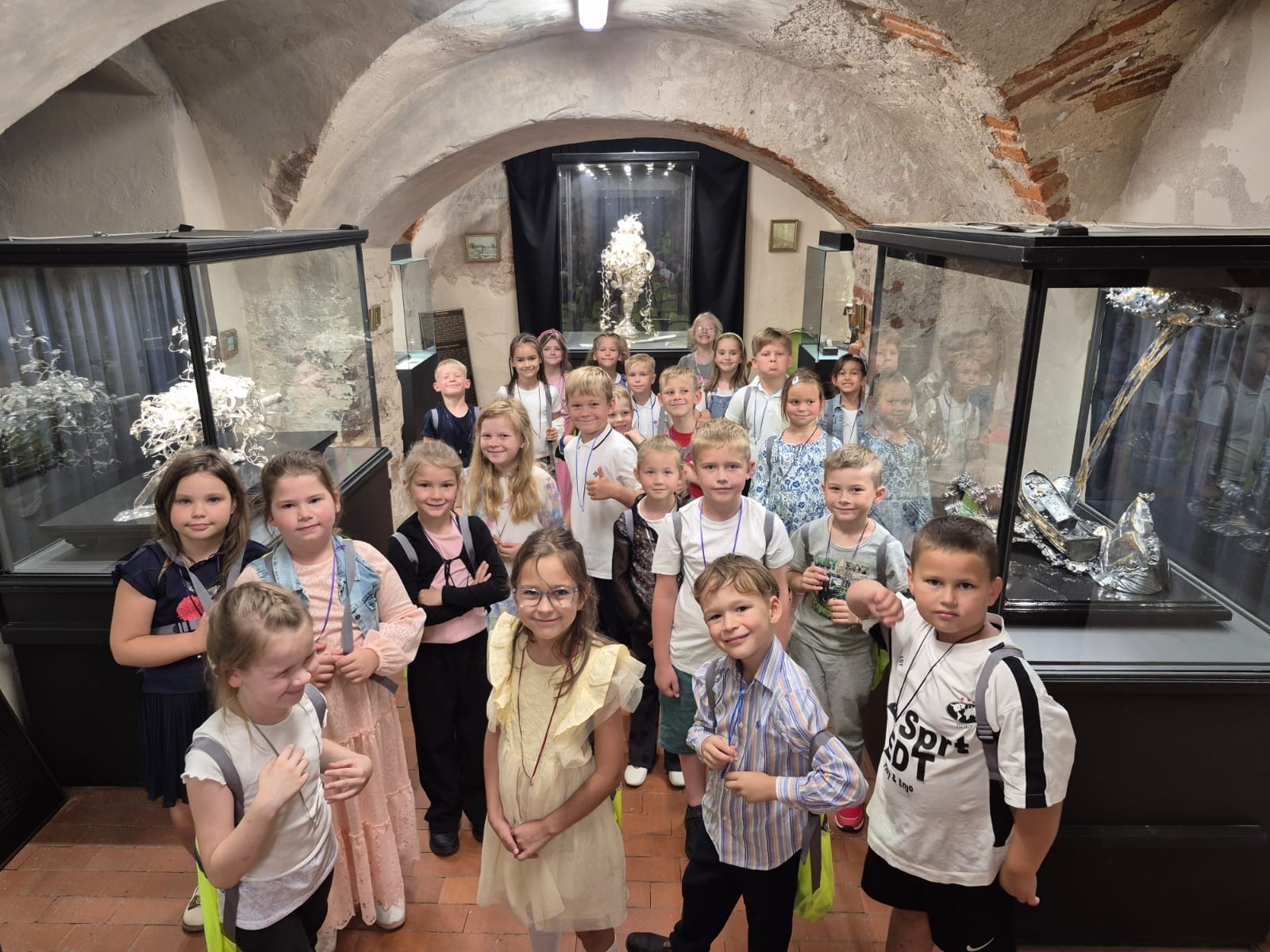 Arī šogad jaunie pirmklasnieki iepazinās ar Sudraba muzeja ekspozīciju, kurā izstādīti O.Auzera mākslas darbi.