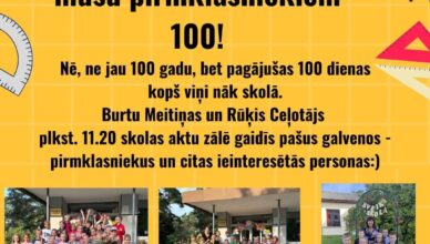 Tā nu mūsu pirmklasnieki šā gada 7. februārī devās pie Salacgrīvas pirmklasniekiem uz 100 dienu atzīmēšanas pasākumu, kur mūs laipni sagaidīja RŪĶIS CEĻOTĀJS