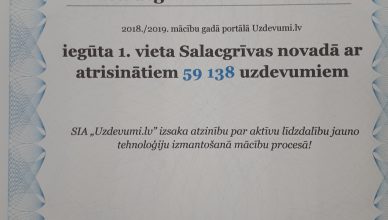 Salacgrīvas vidusskolas skolēni čakli risinājuši, bet skolotāji tikpat čakli uzdevuši digitālos mācību uzdevumus izglītības portālā uzdevumi.lv. Portālā atrisināti 59 138 digitāli uzdevumi. Prieks