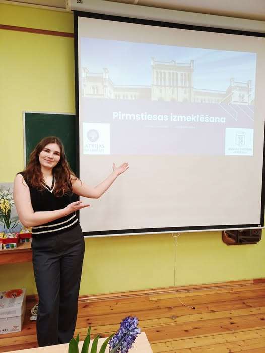 Salacgrīvas vidusskolā vienmēr ir īpašs prieks satikt savējos – absolventus, kuri atgriežas skolā, lai dalītos savā pieredzē un iedvesmotu skolēnus. Sociālo zinātņu mācību stundā 12.v klases skolēniem bija iespēja tikties ar mūsu skolas absolventi Lieni Damsoni.