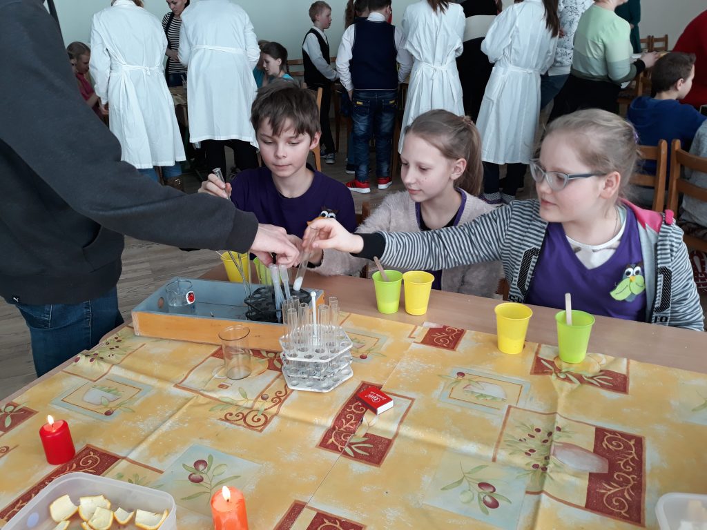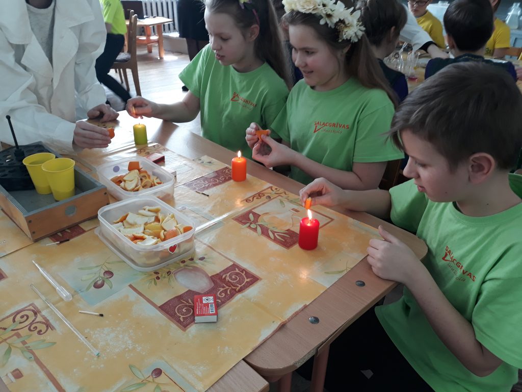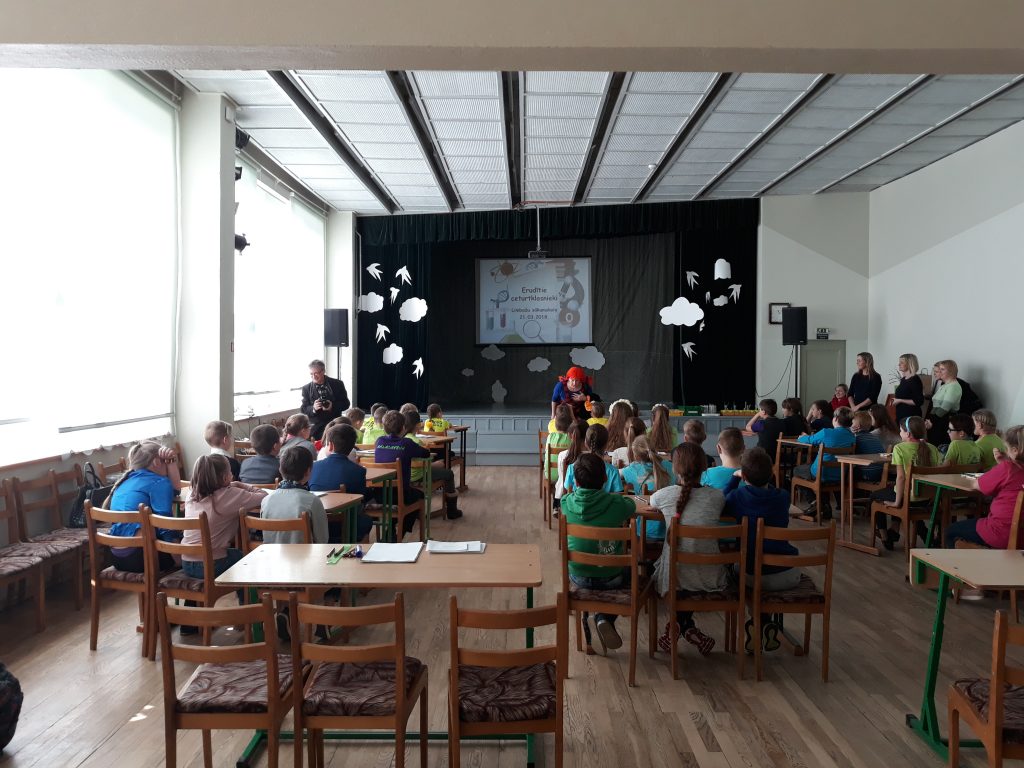 Ļoti interesants bija pasākums pēc konkursa, kad zālē ieradās baltos halātos tērpti ģimnāzijas vecāko klašu skolēni, lai kopā ar ceturtklasniekiem veiktu dažādus eksperimentus un radītu brīnumus.