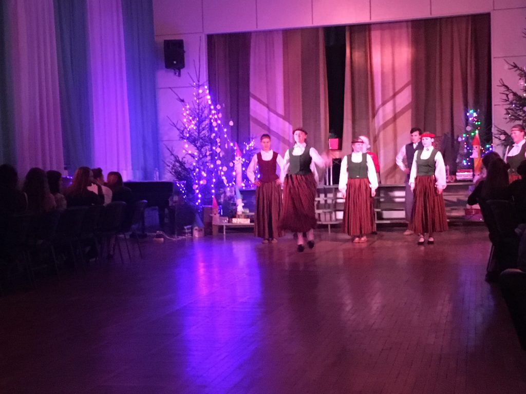 Tālāk ceļojums atveda uz Latviju- 12.klase uzstājās ar azartisku “Govju kazaku”, solo izpildīja klases audzinātāja Laila Rozenberga. Prieks, ka priekšnesumā bija iesaistītas arī meitenes, kuras neapmeklē tautisko deju nodarbības.
