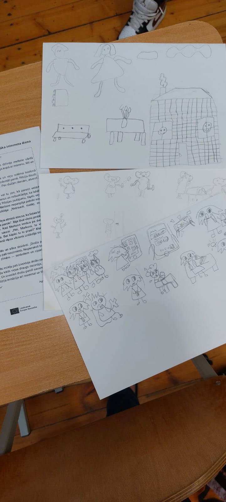 Nodarbībā “Kā runāt vienam ar otru?” skolēni mācījās par cieņpilnu saziņu un drošību internetā, iesākot nodarbību ar radošu ķeburošanu – domājot, zīmējot un runājot par to, kā būt drošiem tiešsaistē.
