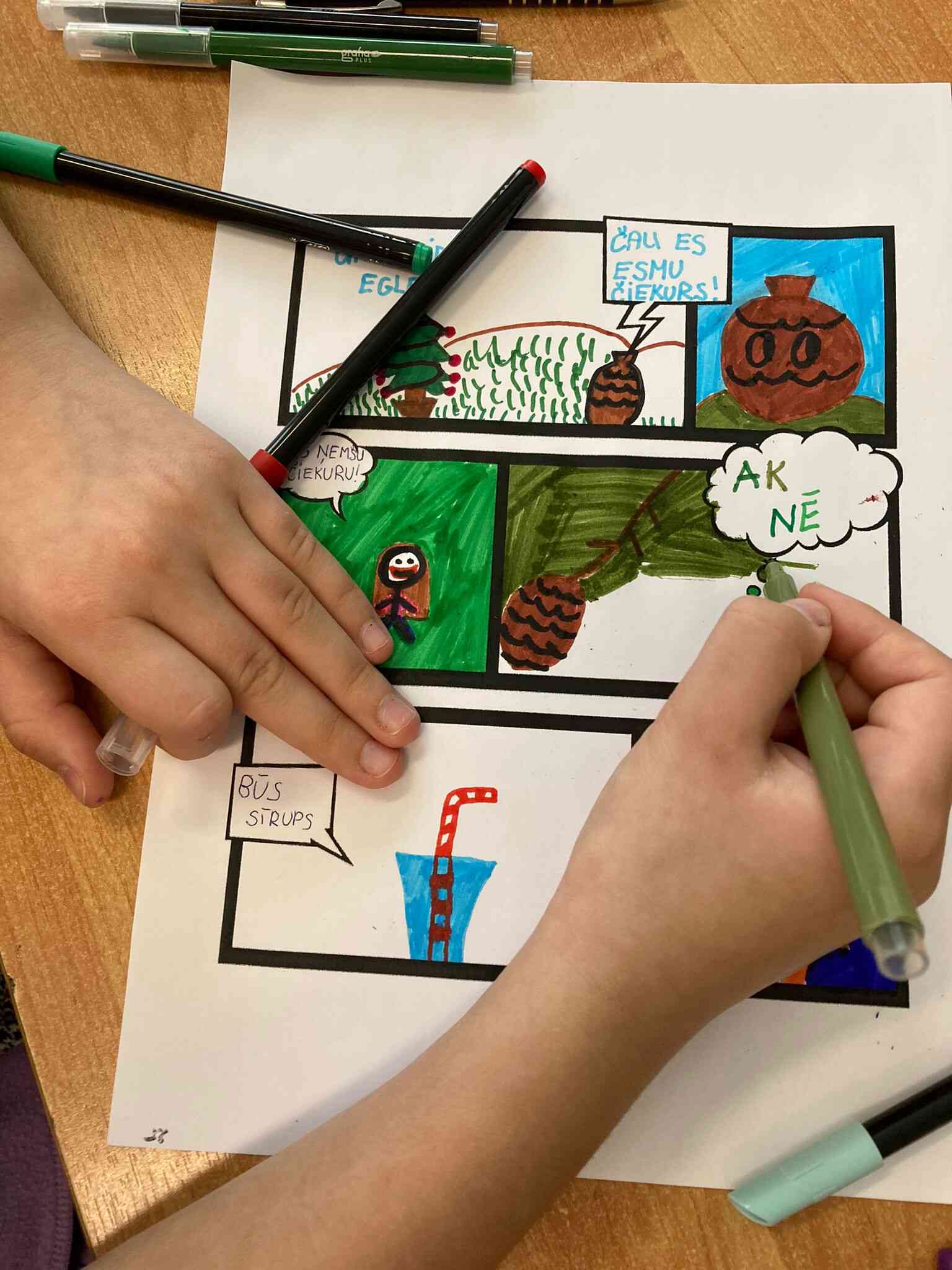Katra klase saņēma neparastu zīmuli ar egles sēklām – kā klases kopējo zināšanu simbolu. Kad būsim izrakstījuši zīmuli, sekojot klāt pievienotajai instrukcijai, iestādīsim sēklas, lai izaudzētu īstu lietas koku.