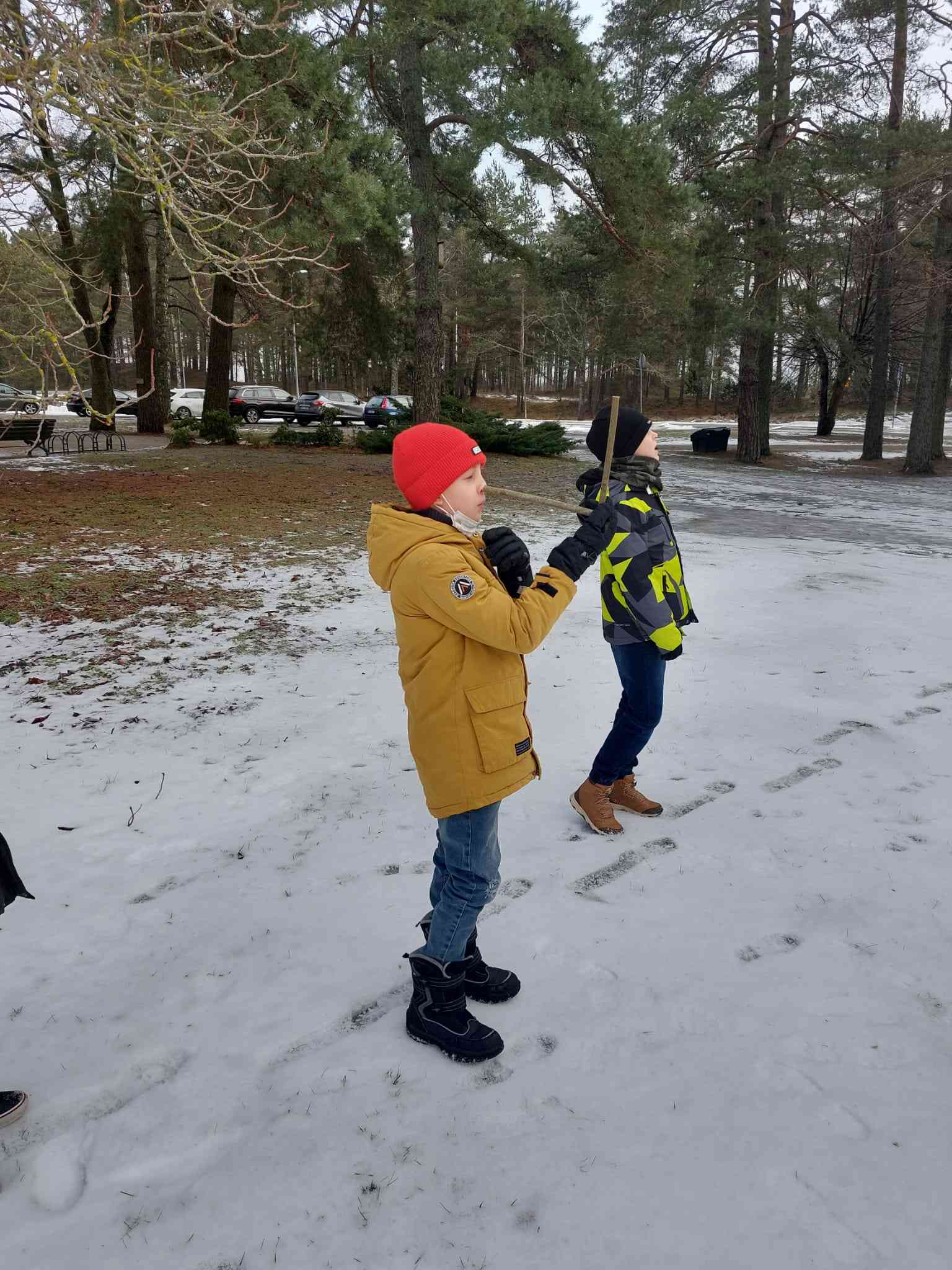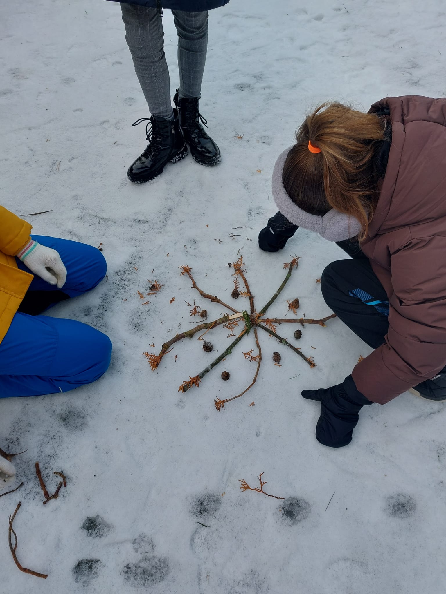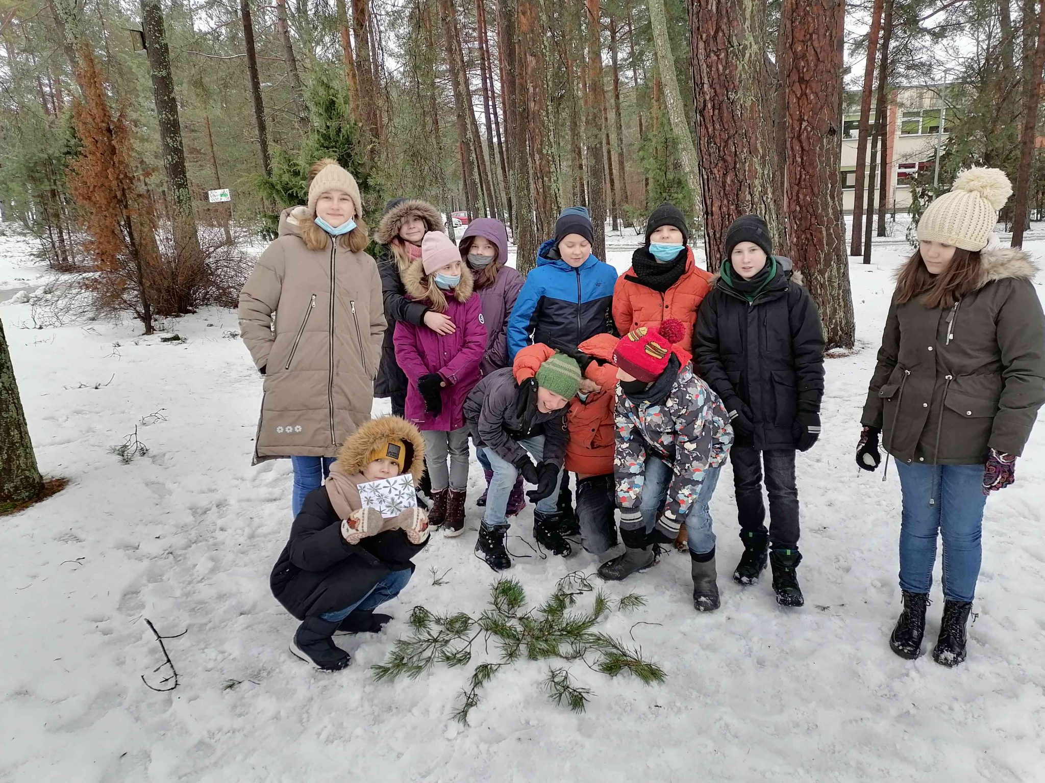 26.janvārī noskaidrojām, vai skolas tuvumā augošās egles ir dižkoki, kā arī no dabas materiāliem izveidojām īpašo sniegpārslu.