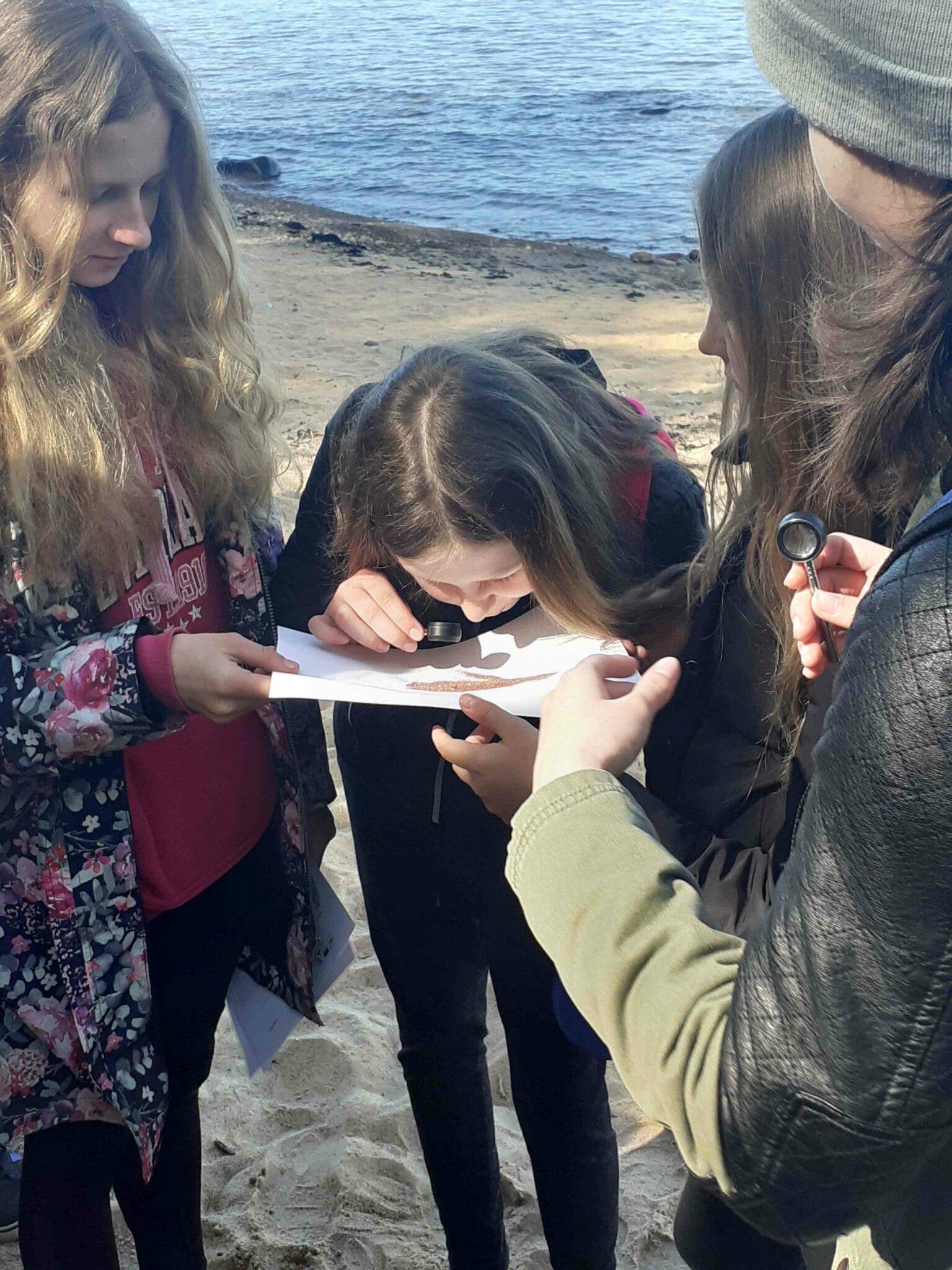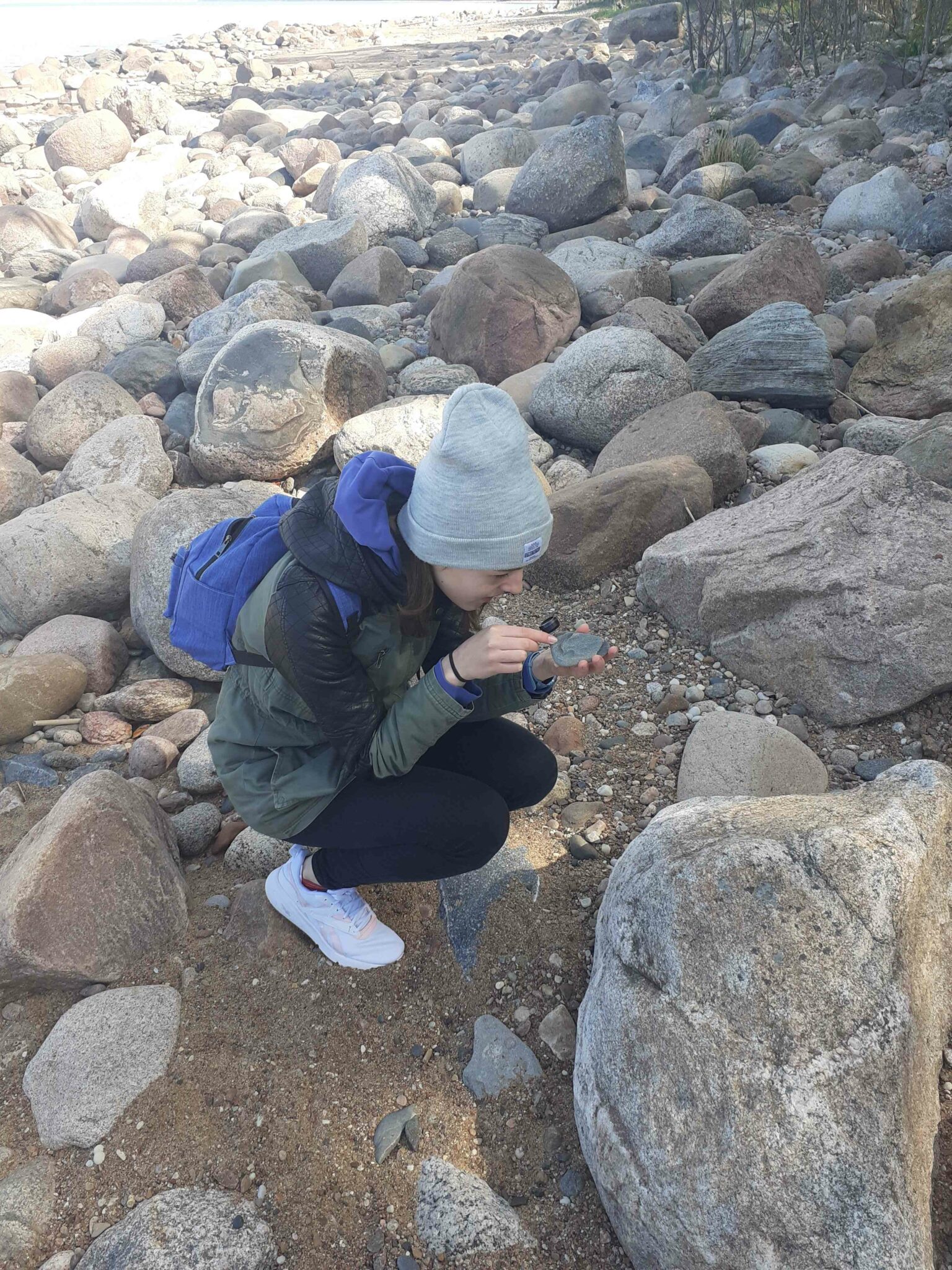 Tālāk ceļš mūs veda pa akmeņaino jūrmalu, kur pētījām cik dažādi ir tur sastopamie akmeņi.