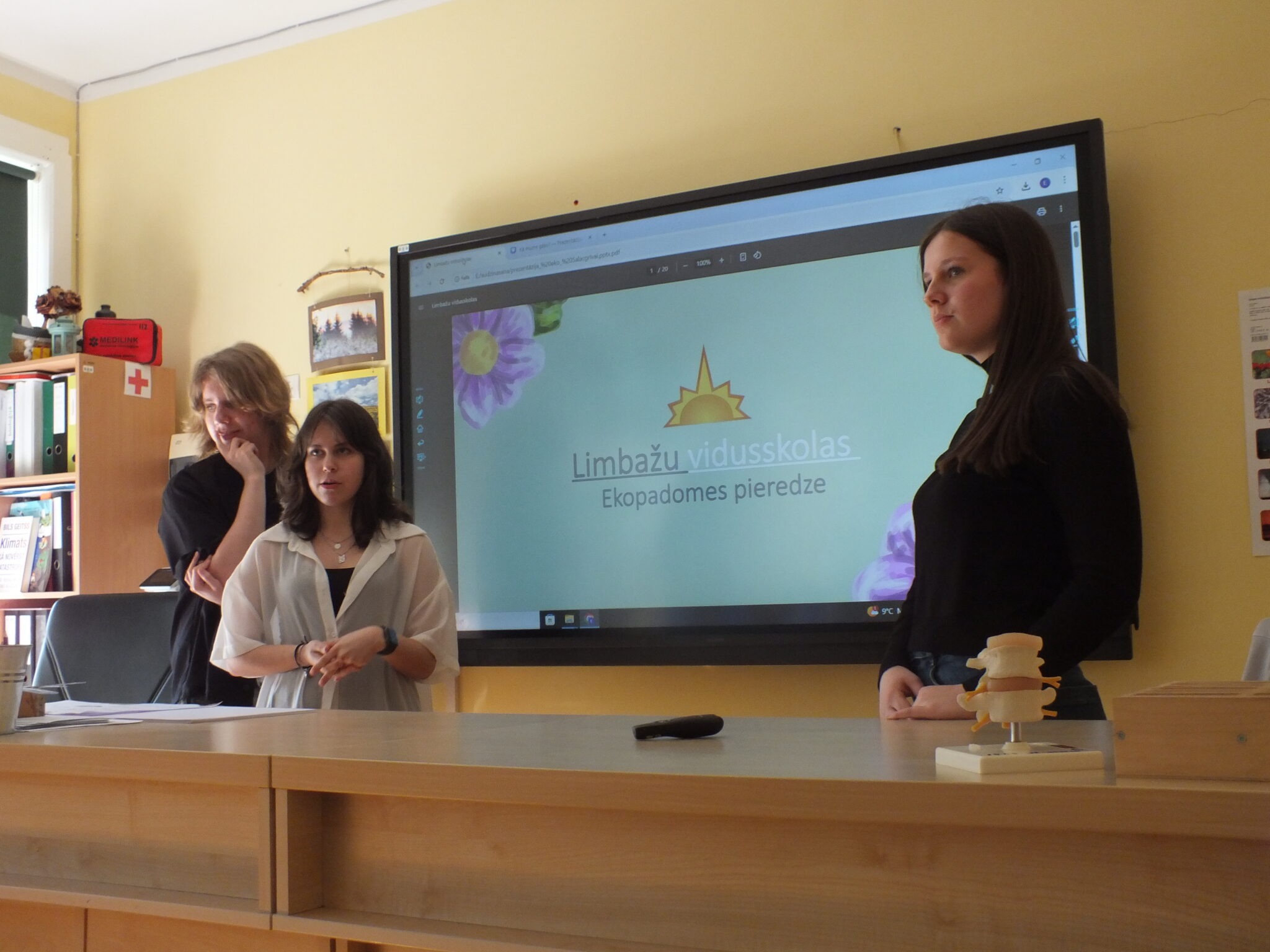 Pēcpusdienas daļā dalījāmies pieredzē. Abu ekopadomju skolēni patstāvīgi bija sagatavojuši prezentācijas, stāstījumu un pārliecinoši uzstājās auditorijas priekšā. Viesi pastāstīja par dažādām aktivitātēm savā skolā – aprites skapi, PET pudeļu vākšanu un nodošanu depozītā un darbošanos dažādos projektos.
