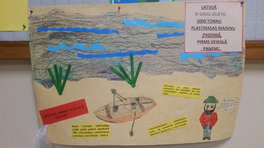 Izstāde taps 6.novembrī, bet skolēni jau nes uz skolu ļoti interesantus iepirkuma maisiņus, kuri šūti gan no vairs nevalkājamiem krekliem, džinsām, skapjos ilgi gulējušiem auduma gabaliņiem utt. Daži greznāki, daži vienkāršāki. Ir arī tamborēti, adīti. Bet visas radošuma izpausmes varēs novērtēt izstādē. Šīs kampaņas mērķis ir likt aizdomāties par veikalā iegādāto plastmasas maisiņu kaitīgo ietekmi uz vidi.