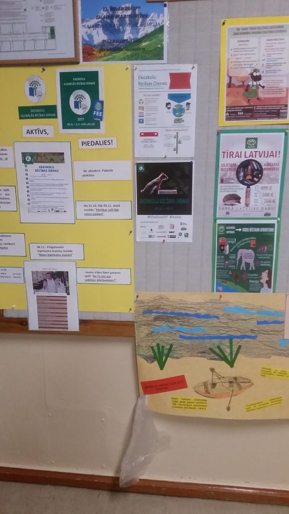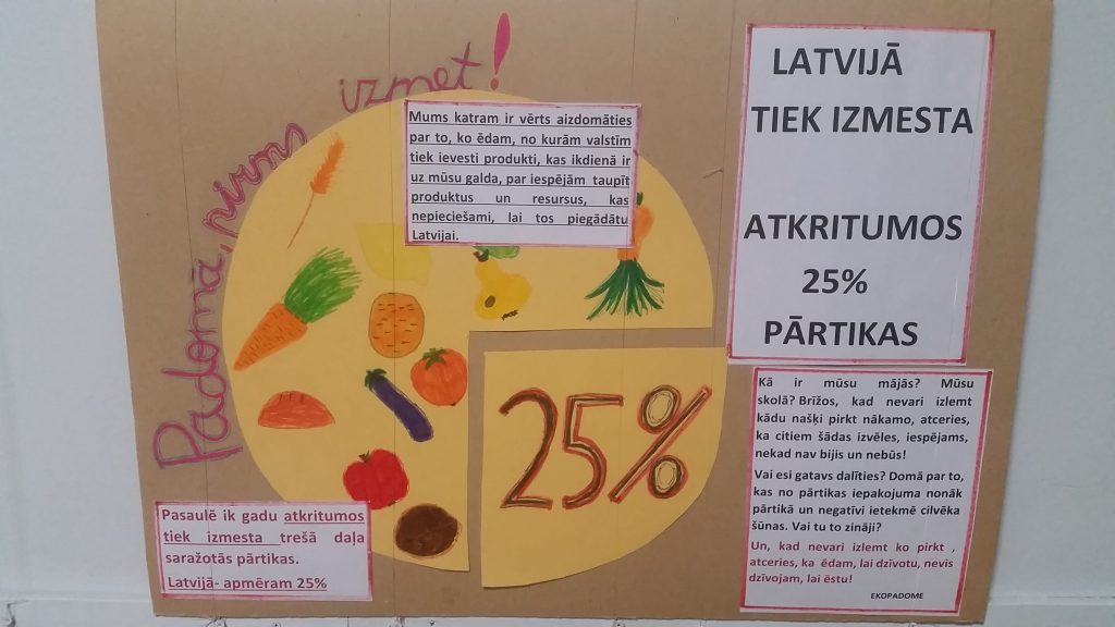 Rīcības dienas pirmdien, 30.oktobrī, iesākās ar visu klašu sagatavotu izzinošu, informatīvu plakātu izstādi “Pārtikas ceļš līdz mūsu galdam”. Plakāti izsmeļoši informē par dažādu produktu izcelsmi, veselīgumu vai gluži pretēji- brīdina, ka tie nebūtu vēlami mūsu ēdienkartē.