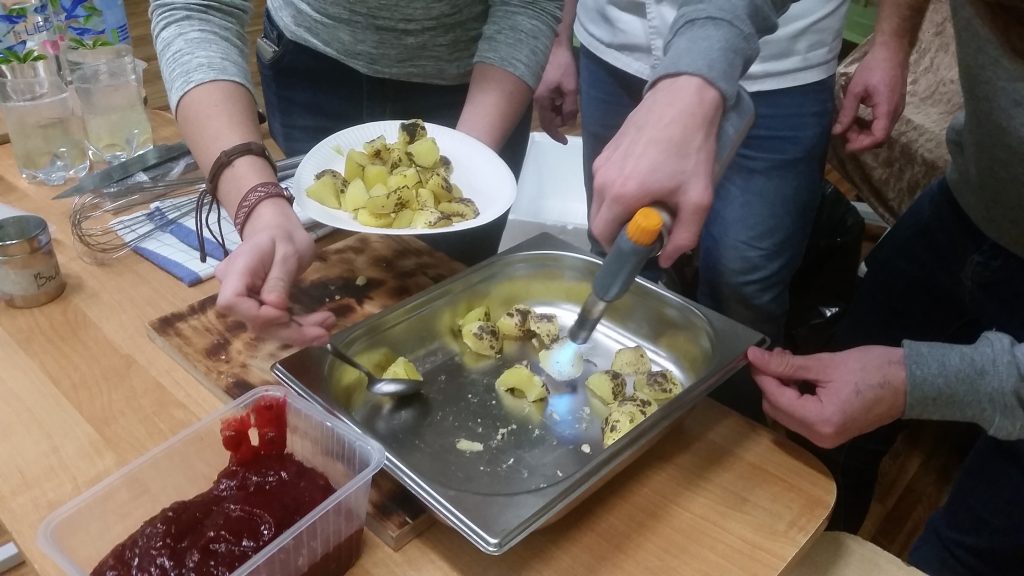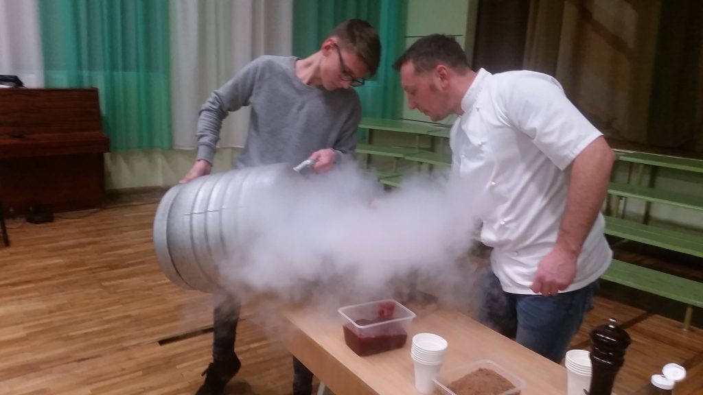 Skolēniem bija iespēja degustēt skuju sīrupu, interesanti pagatavotus kartupeļus, siļķi, mārrutku mērci. Ļoti gardi bija eļļā cepti ķērpji. Bet desertā visi varēja baudīt īpaši sagatavotu saldējumu ar sasmalcinātu rupjmaizi un brūkleņu mērci.