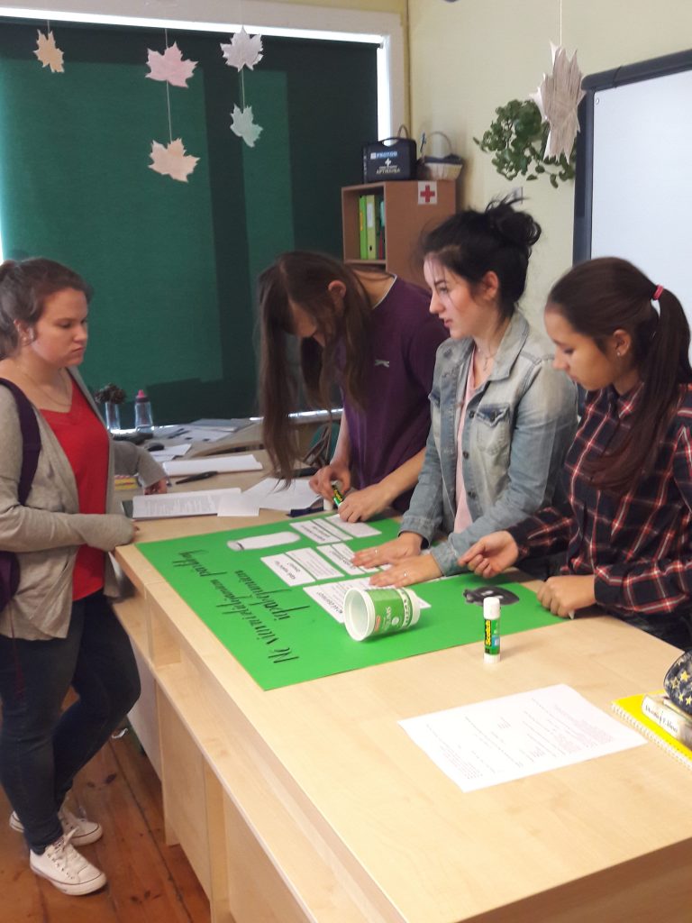 Trešdien, 31.oktobrī, ekopadomes pārstāvji iekārtoja ekodēli, kur tika izlikta informācija par plastmasu, tās sadalīšanos un kaitējumu.