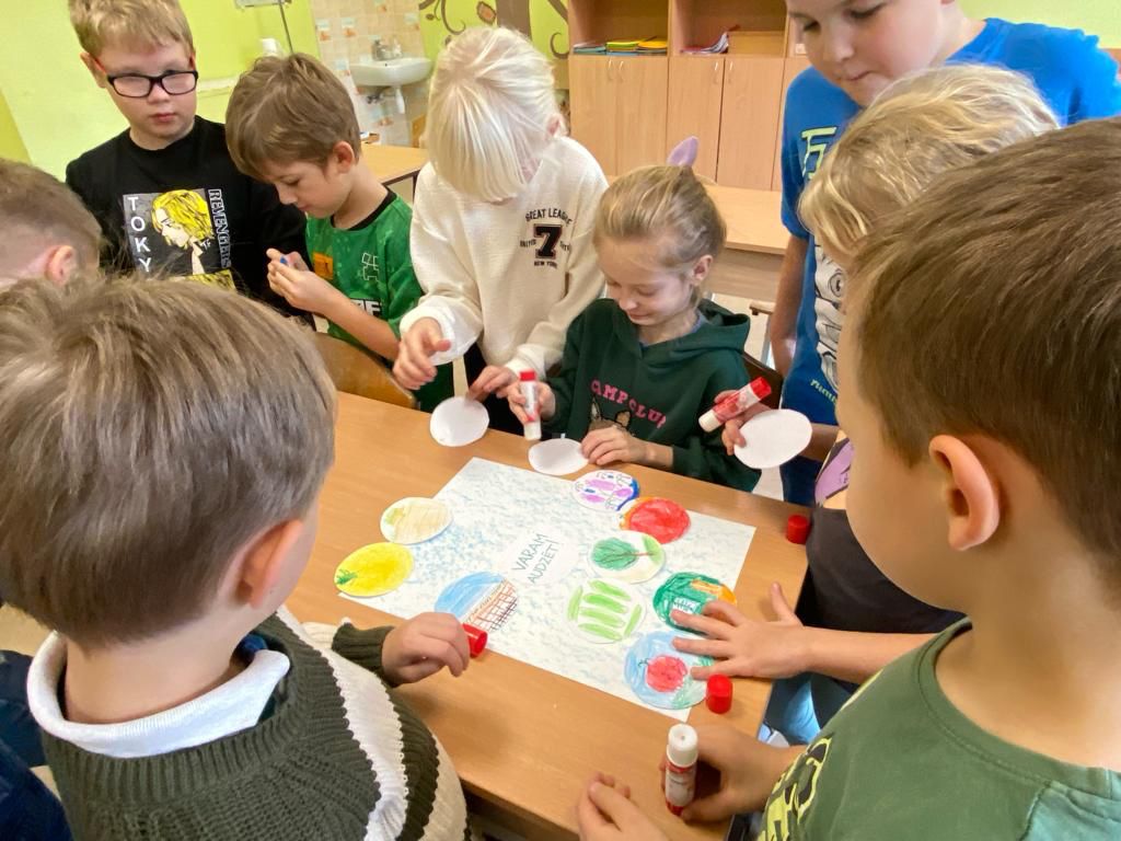 Pirmo klašu skolēni veidoja plakātu “Varam saudzēt!” Skolēni atzina, ka bija priecīgi par iespēju darboties, veidojot plakātu, jo to darījuši pirmoreiz. Viņiem bija jāsaskaras ar dažādiem izaicinājumiem, piemēram, sadarbošanos, dalīšanos, nonākšanas pie kopīgas atbildes. Viņiem ļoti patīk runāt par tēmām, kas saistītas ar dabu un tās saudzēšanu, jo zina, ka tas ir svarīgi. Šo uzdevumu viņi veica no sirds.
