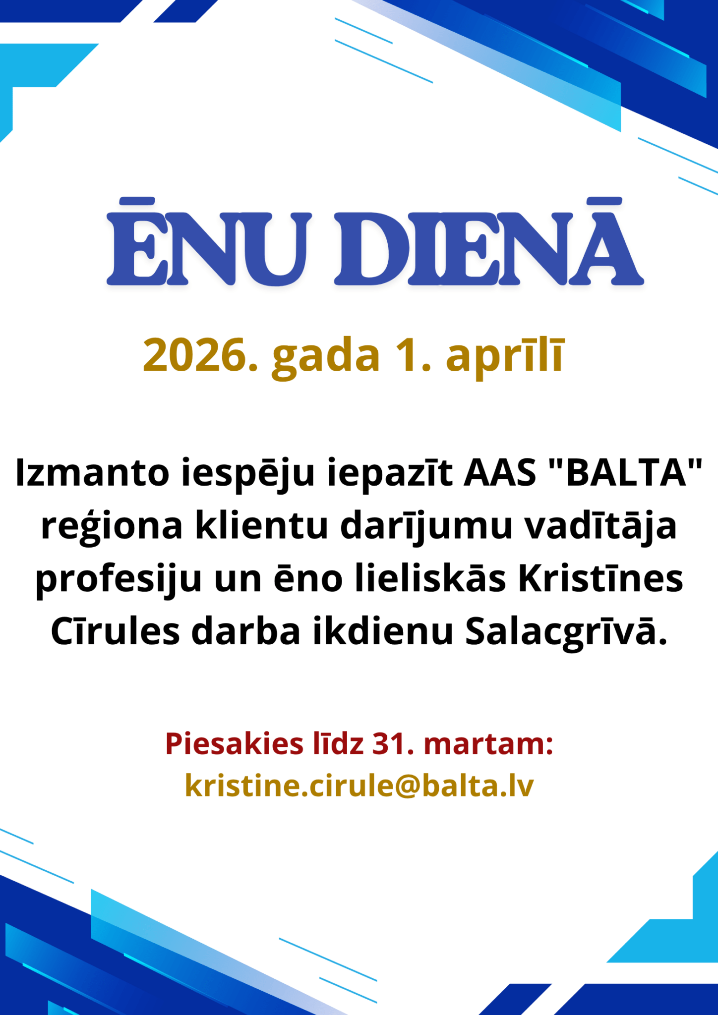 Piesakies līdz 31. martam un jau 1. aprīlī iepazīsti klientu darījumu vadītāja profesiju apdrošināšanas jomā. Liels paldies Kristīnei Cīrulei par atsaucību!