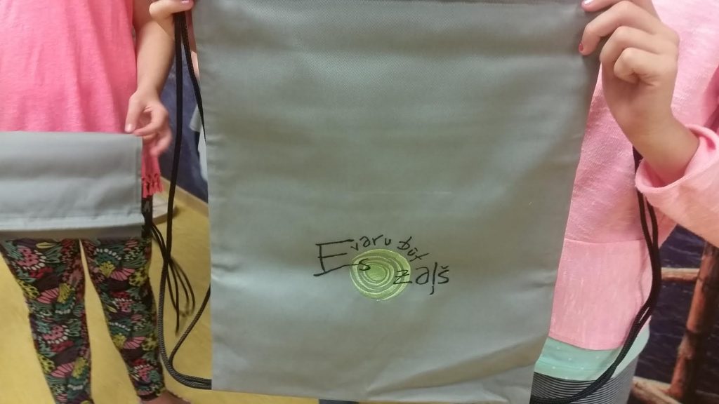 Par sadarbību skolēni un skolotāja saņēma dāvanu- auduma maisiņu ar RE TV raidījuma “Es varu būt zaļš” un Latvijas vides aizsardzības fonda emblēmu. Varam būt tikai pateicīgi par šo izveidojušos sadarbību ar Re TV un Ivetu Auniņu. Mēs taču visi varam būt zaļi domājoši!