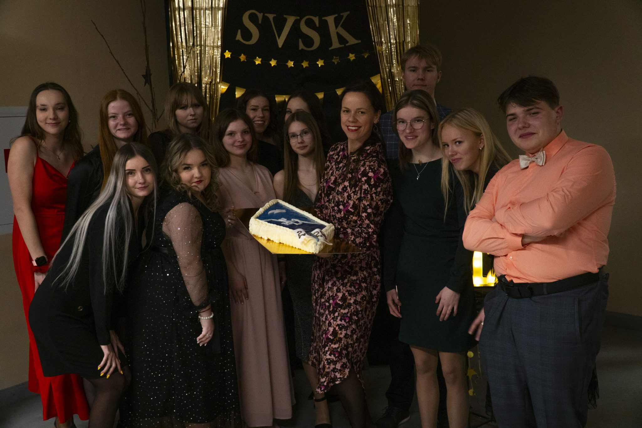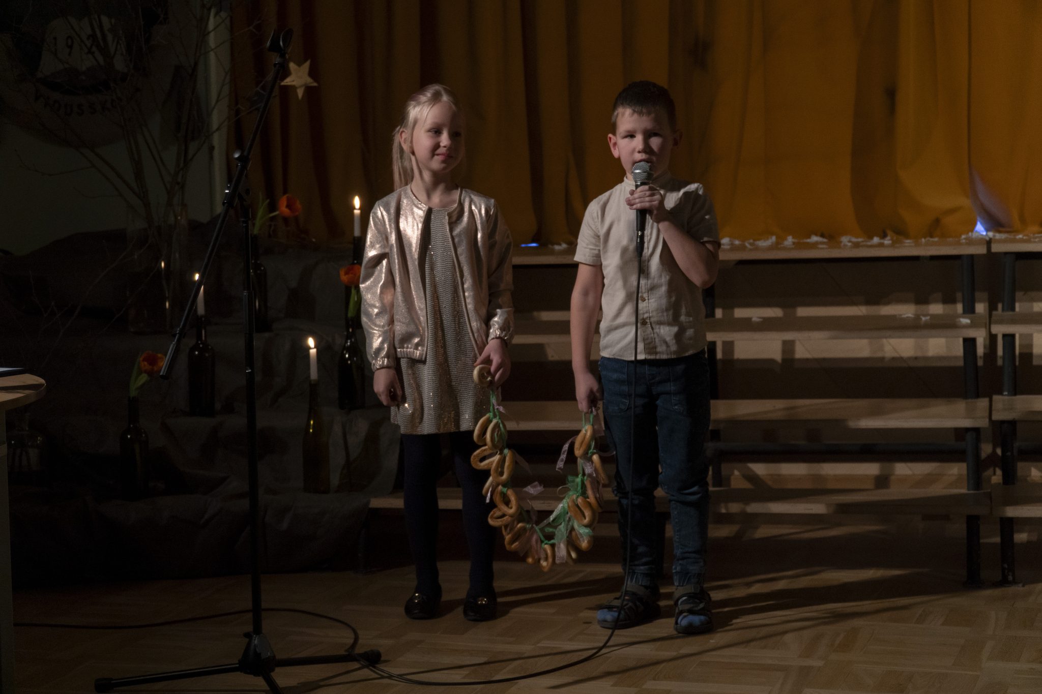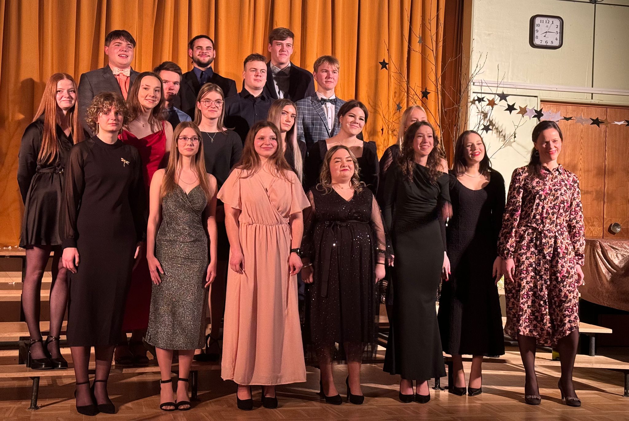 Viesus sagaidīja 11.klases gaumīgi ar zvaigznēm rotātā skola – zvaigznes bija arī 12.klašu izvēle gan savām bērnības bildēm, gan uz ekrāna, kur katram absolventam bija atspoguļoti trīs raksturojoši fakti: kas vienmēr ir manā mugursomā, mana superspēja un mans biežāk lietotais izteiciens skolā.