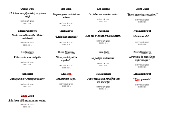 Arī direktores uzruna bija saistīta ar kino: “Labvakar, mīļie divpadsmitie. Labvakar, cienījamie klātesošie.