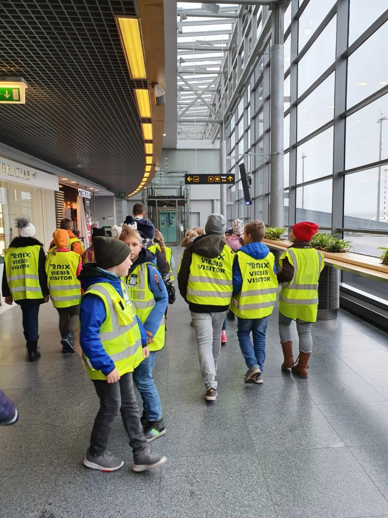 Pēc Aviācijas muzeja apmeklējuma devāmies atpakaļ, kur jau mūs gaidīja pirmā grupa – sapratām, ka ekskursija bija iespaidīga, jo skolēni emocijas un pārsteigumu par redzēto neslēpa! Ar nepacietību gaidījām savu kārtu! Taču pirms došanās piedzīvojumā – katram jāuzvelk dzeltenas vestes ar atstarotājiem – lai esam pamanāmi!