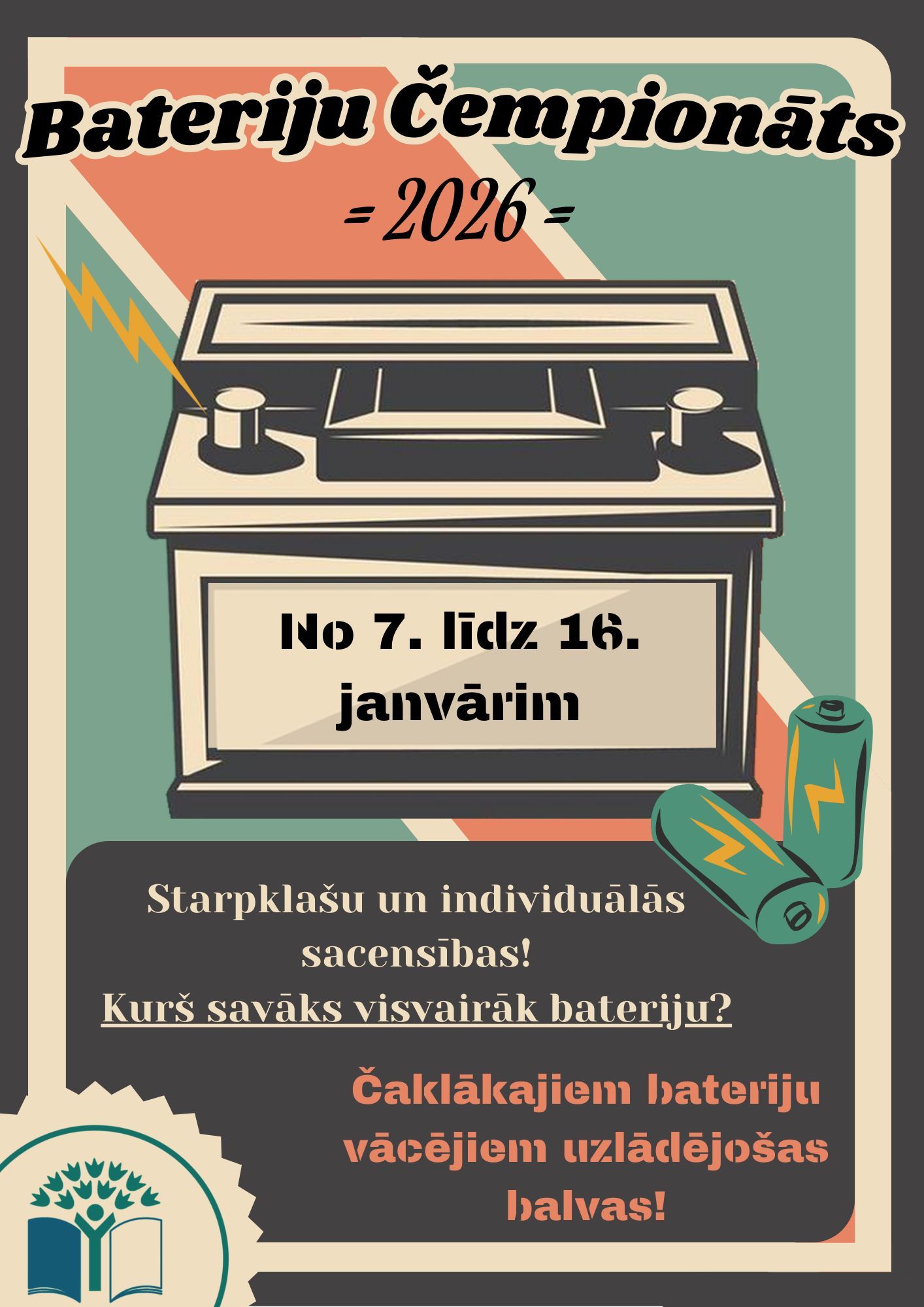 Atnes izlietotās baterijas uz Salacgrīvas vidusskolu vai Ainažu skolu, atdod tās klases audzinātājam/-ai un piedalies izlietoto bateriju vākšanas čempionātā.