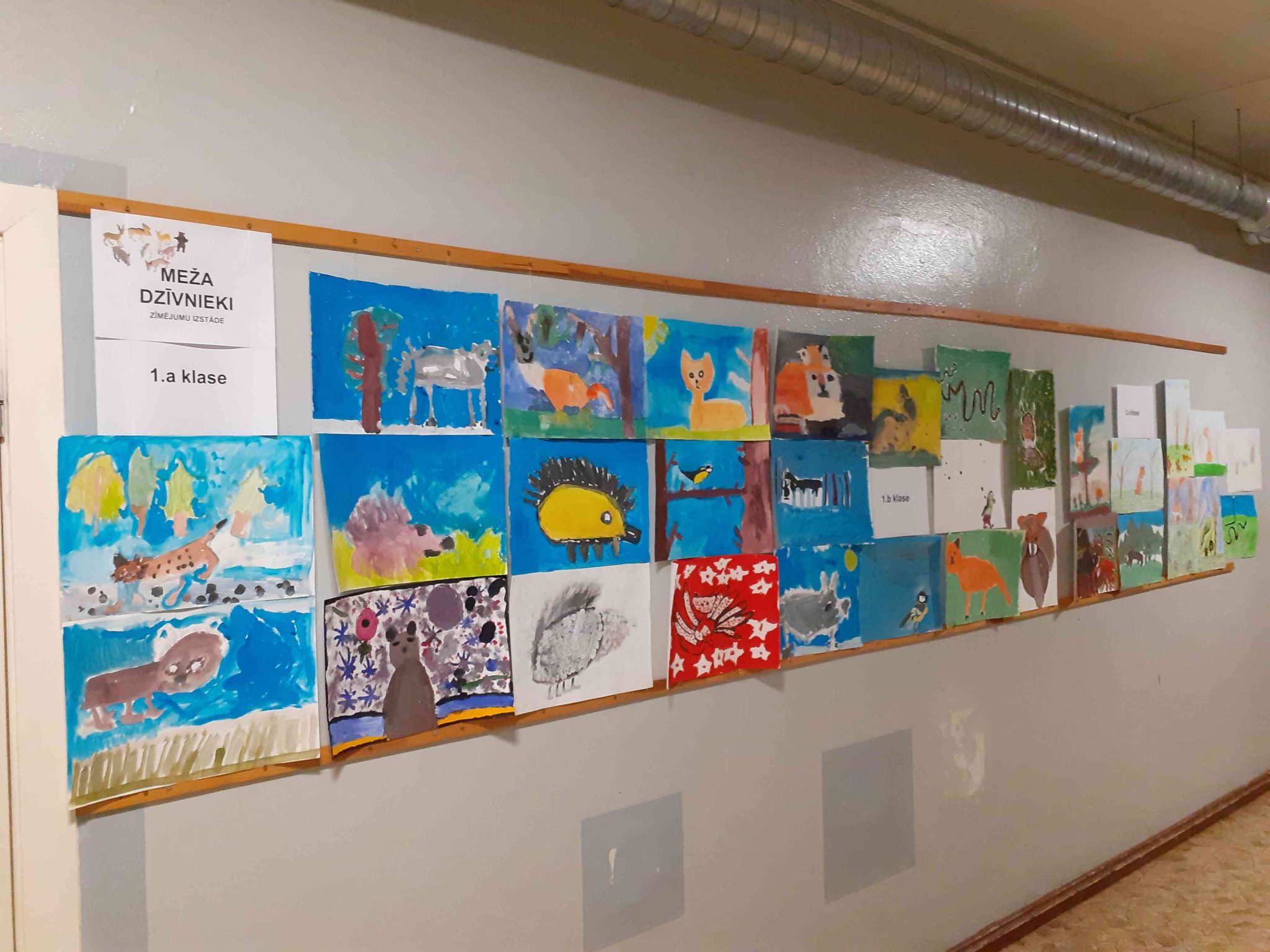 Skolēni vizuālajā mākslā zīmēja meža dzīvniekus un dabaszinību stundās par šo dzīvnieku noskaidroja informāciju un stāstīja citiem.