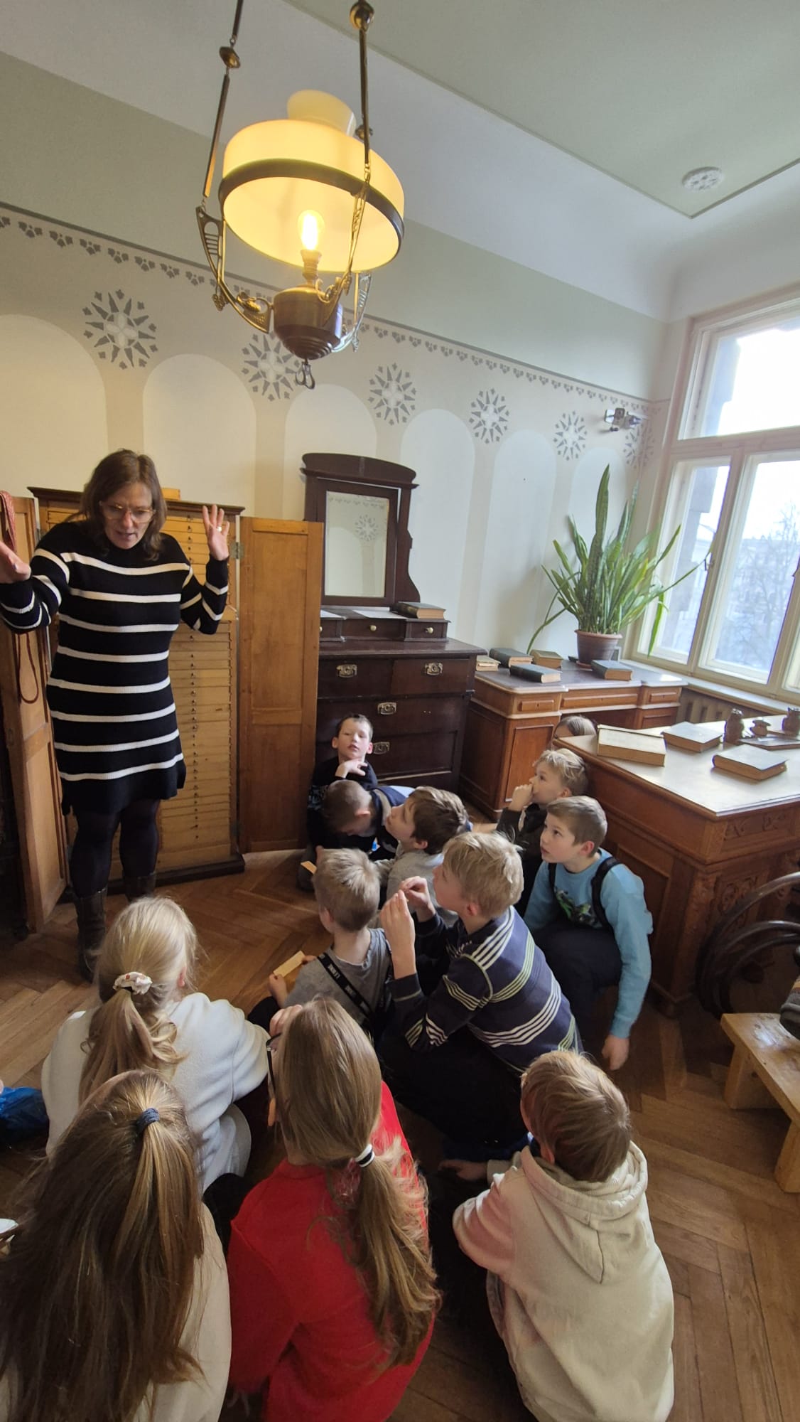 Bērni apskatīja Barona Rīgas dzīvokli un darba istabu, ieguva priekšstatu par 19. gadsimta sadzīvi un intelektuālā darba vidi. Īpašu interesi raisīja rakstīšanas pults – vieta, pie kuras varēja rakstīt stāvus – atpūtināt muguru no sēdēšanas. Skolēni uzzināja, ka tautasdziesmu apkopošana bija mērķtiecīgs un zinātniski pamatots darbs – tekstu salīdzināšana, tematiskā grupēšana un rūpīga sakārtošana noteiktā sistēmā.