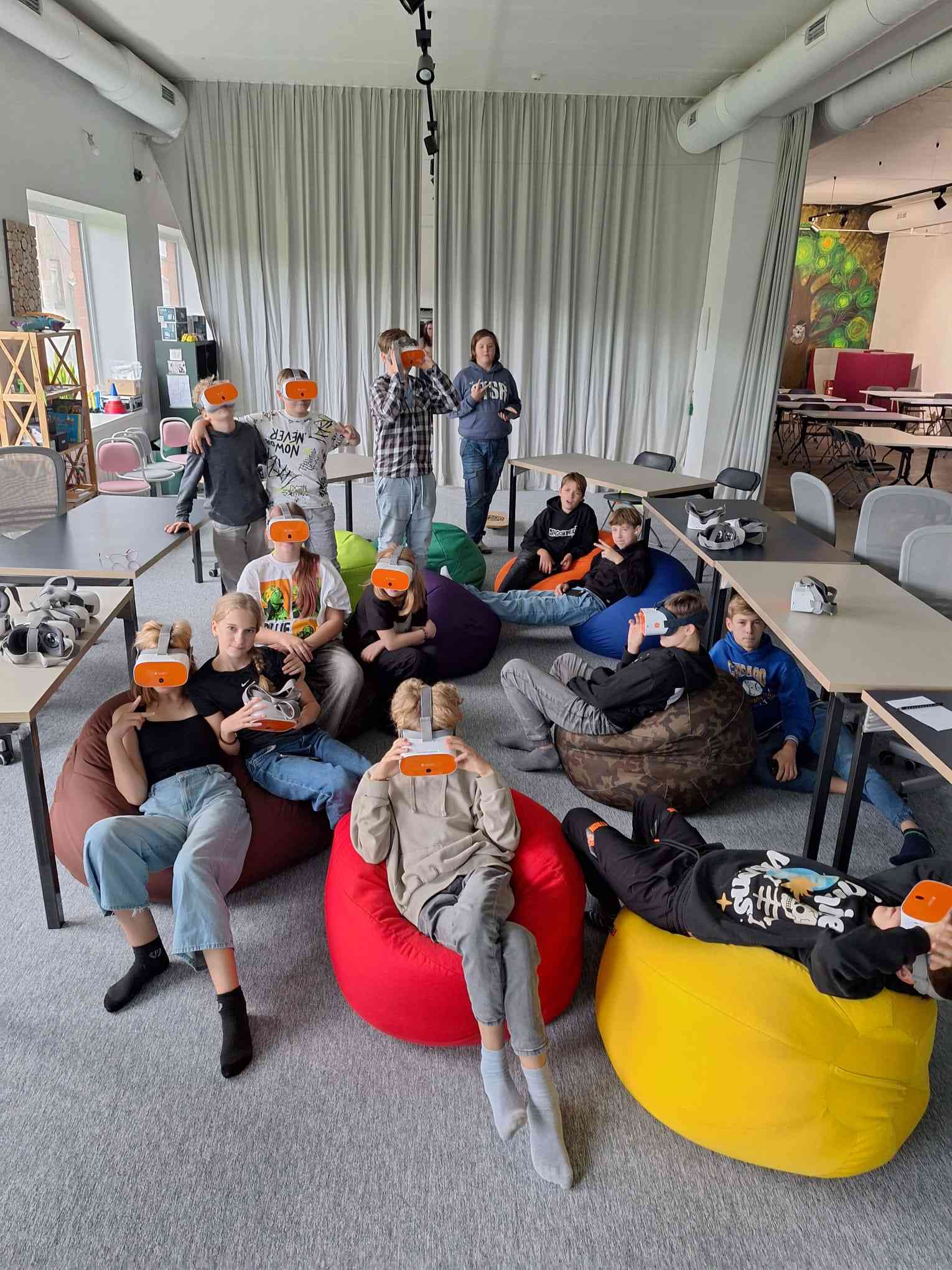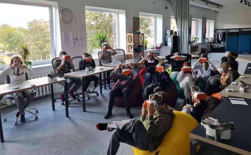 Pieteicāmies nodarbībai “Planēta zeme un atkritumu šķirošana”. Skolēniem bija iespēja interaktīvi izmēģināt izglītojošas spēles. Viena no tām – jāsaliek dažādi atkritumi secīgi, ņemot vērā to pārstrādes ilgums. Jauna pieredze daudziem no mums bija izmēģināt virtuālās brilles. Kā izrādās ilgākais laiks, kad tās var izmantot ir 15 min (tad ir nepieciešama pauze). Ar briļļu palīdzību mums katram ir iespēja ienirt okeāna dziļumos, aizkļūt tur, kur grūti nokļūt realitātē. Vislielāko uzmanību no skolēnu puses izpelnījās robotsuns, kurš rādīja dažādus trikus.