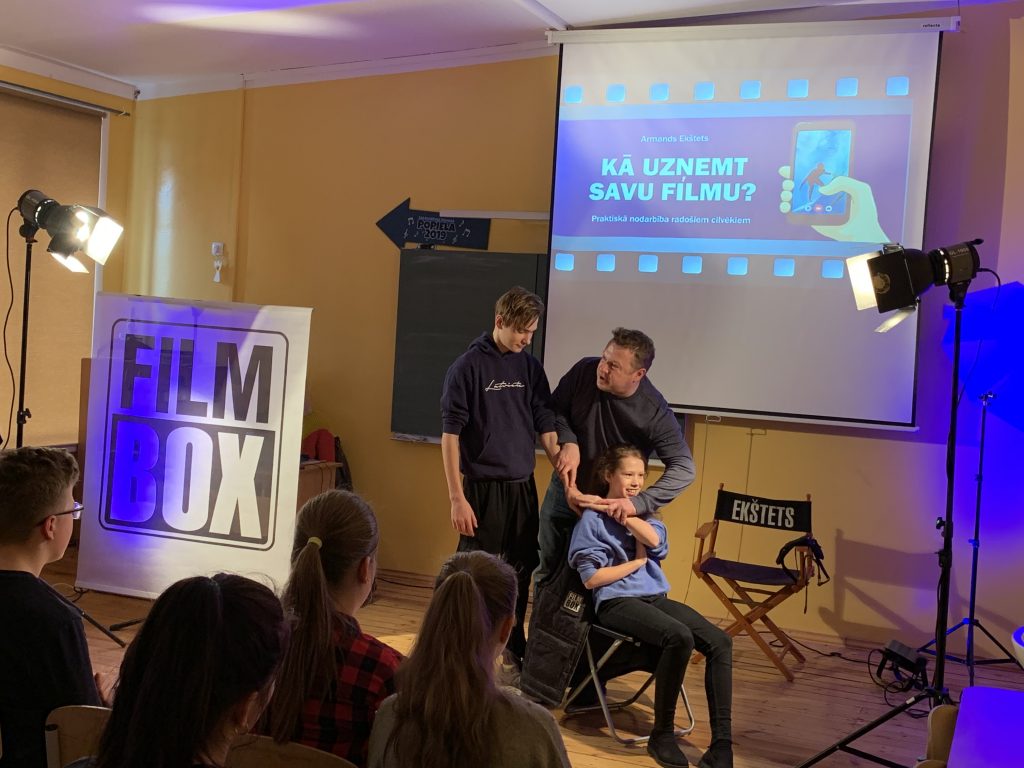Pateicoties straujajai informatīvo tehnoloģiju attīstībai katram no mums šodien ir iespējams uzņemt savu filmu. Mums visiem ir pieejami jaunākās paaudzes telefoni, kuri pietiekami augstā kvalitātē uzņem jebkuru video. Ir nepieciešams tikai radīt kvalitatīvu saturu. Praktiskajā nodarbībā režisors Armands Ekštets stāstīja un rādīja, un iesaistīja jaunos filmēt gribētājus praktiskā darba procesā.