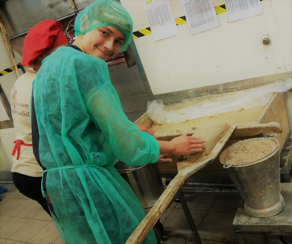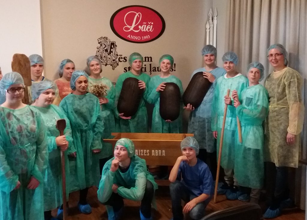 ESF projekta “Karjeras atbalsts vispārējās un profesionālās izglītības iestādēs” ietvaros 8.b klases skolēni 2.novembrī devās ekskursijā uz maiznīcu “Lāči”. Ekskursijas mērķis bija iegūt informāciju par dažādām profesijām maiznīcā. Mēs ekskursijas laikā varējām iejusties maiznieku, konditoru un mācekļu lomās, kā arī nogaršot “Lāču” maizi un gardos smilšu cepumiņus. Iepazinām dažādus darbarīkus, kas tiek izmantoti maiznīcā. Nodarbības laikā mēs izcepām katrs savu cepumu, divus kliņģerus un vienu lielu maizes klaipu, pilnveidojot sadarbības prasmes. Mums vislabāk patika praktiskās nodarbības.