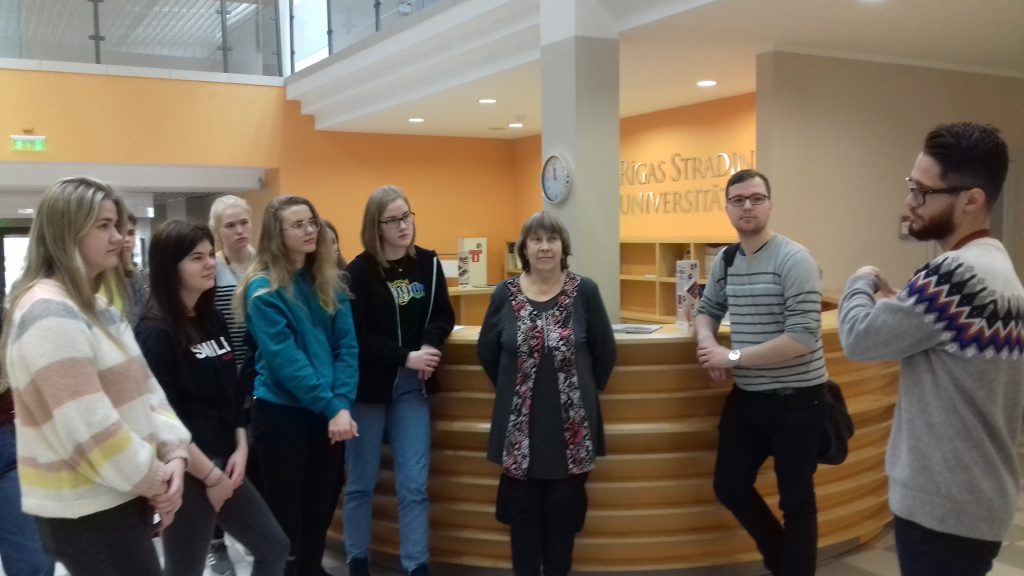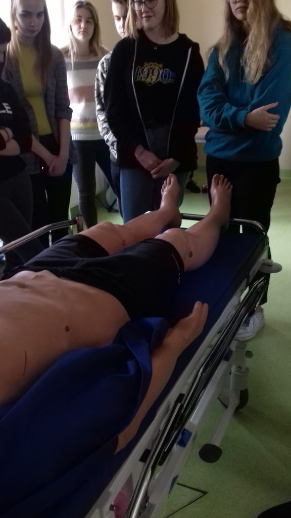 Vispirms skolēni apmeklēja Rīgas Stradiņa universitātes medicīnas izglītības tehnoloģiju centru, kas piedāvā studentiem plašas iespējas apgūt praktisko medicīnu, izmantojot mulāžas, mācību manekenus un simulatorus. Manekeni izskatās gluži kā dzīvi un uz tiem var veikt dažādas manipulācijas. Mūs pavadīja jauks gids Viesturs Levada, plānošanas un tehniskās atbalsta nodaļas biroja vadītājs, kurš iepazīstināja ar RSU studiju virzieniem un kādas profesijas var apgūt RSU, kādi eksāmeni un ar cik procentiem jānokārto, lai tiktu budžeta grupā. Par studijām detalizēti skolēni varēja izprasīt mūsu bijušajam skolēnam Mārtiņam Vaivadam, kurš nu jau ir 6.mācību gada students un gatavojas noslēguma eksāmeniem un pavadīja mūs šajā ekskursijā. Savos iespaidos dalījās Katrīna: ” Apmeklējot RSU medicīnas zinātņu un tehnoloģiju centru es uzzināju jaunu un interesantu informāciju. Vēlreiz pārliecinājos par to, ka bez gribēšanas, mērķa un darīšanas nav iespējams sasniegt to, ko vēlamies. Viss redzētais bija wow! Jauna pieredze par dzirdēto un redzēto, un kārtējo reizi apstiprinājās, ka ir jāmācās, jāmācās, jāmācās!”
