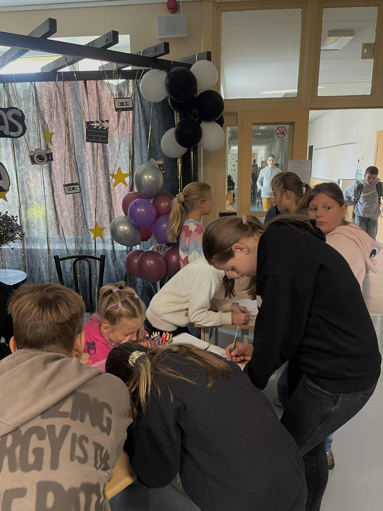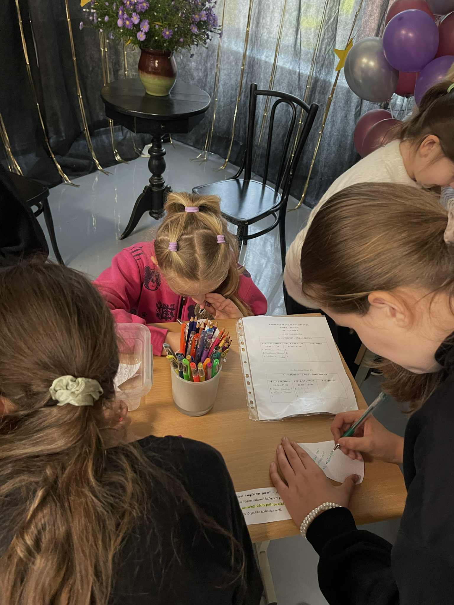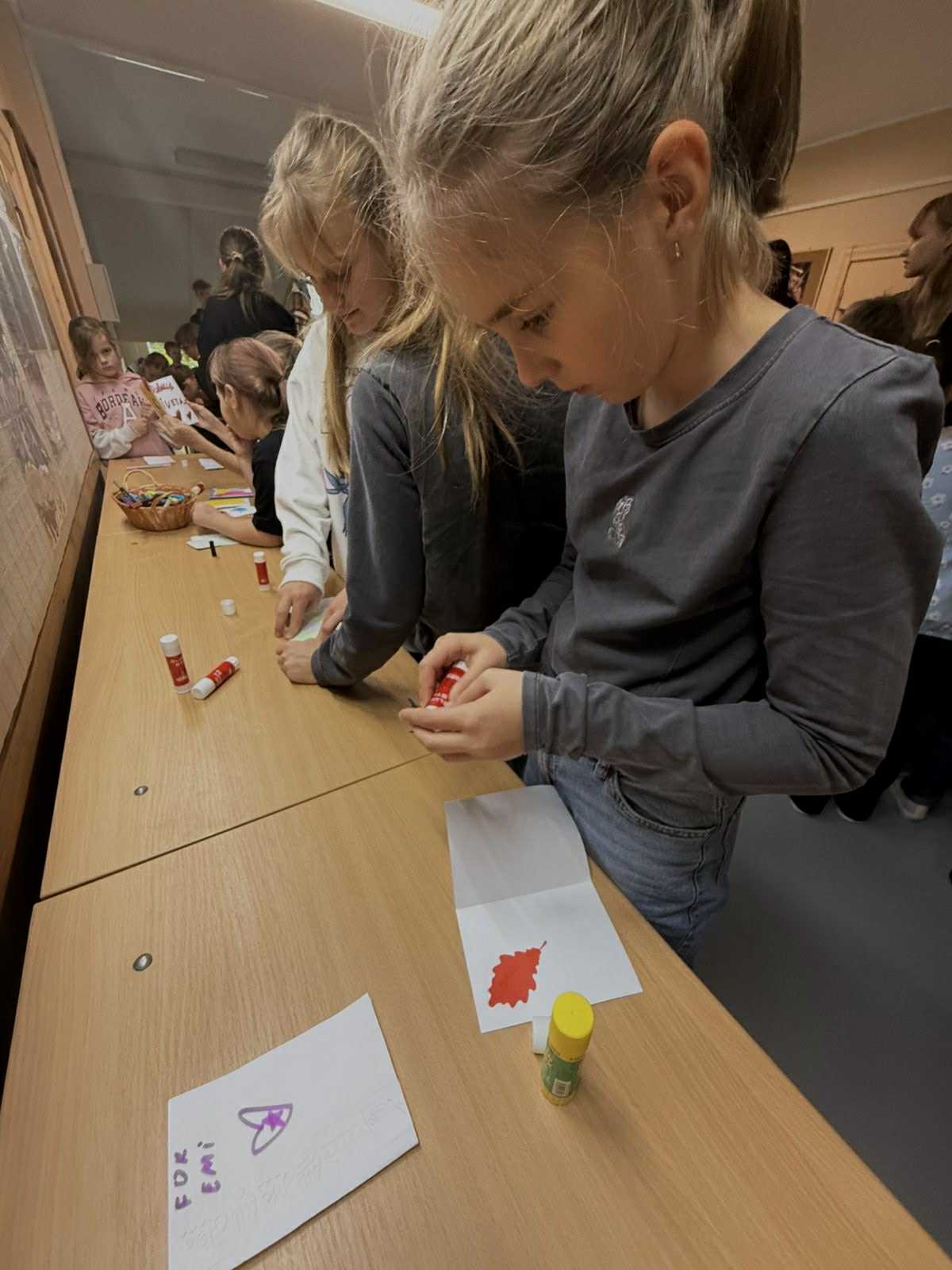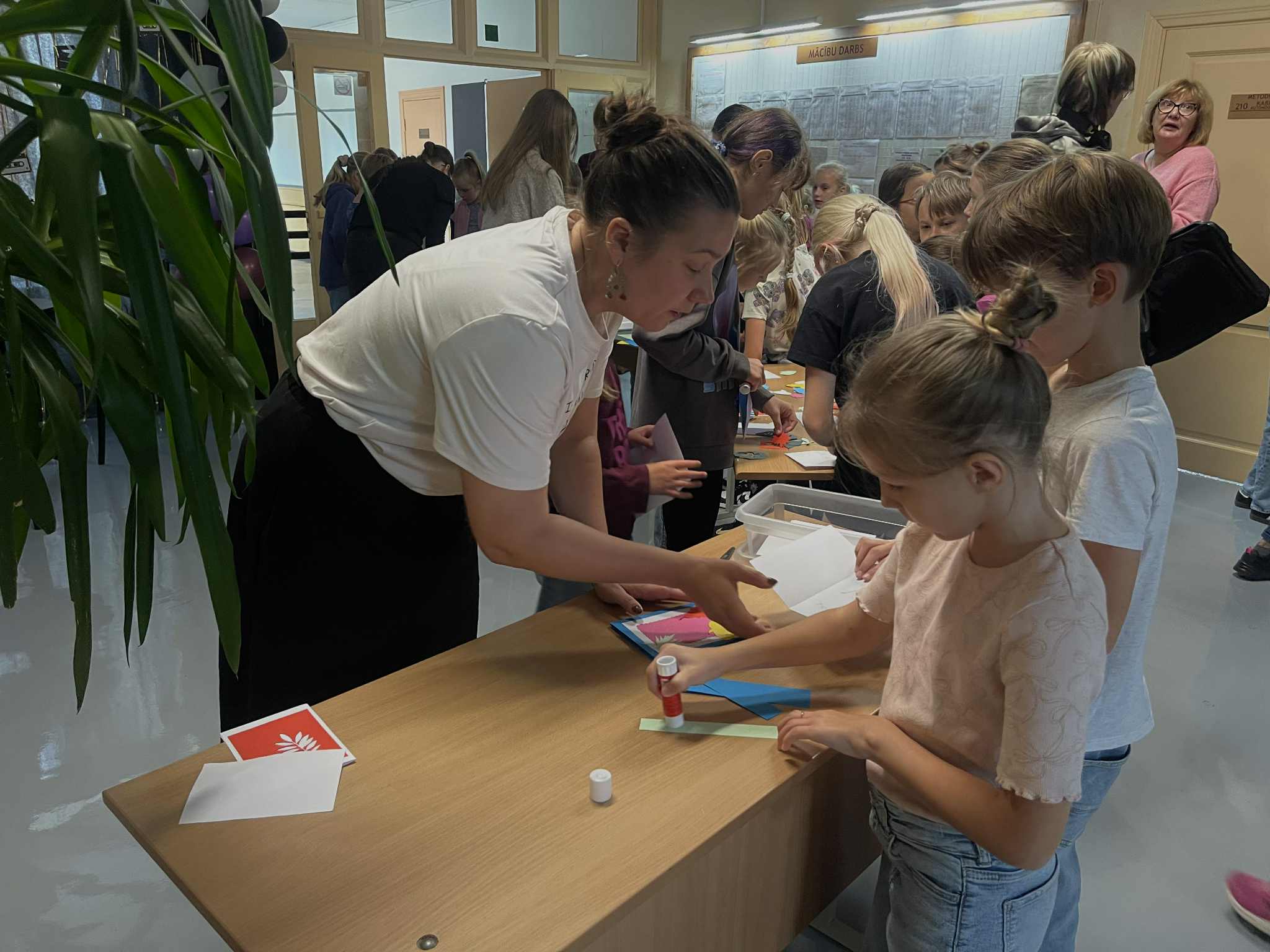 Darbnīcas laikā skolēni ar lielu aizrautību un radošumu izgatavoja apsveikuma kartītes saviem draugiem, skolas biedriem, skolotājiem, kā arī vecākiem – mammām un tētiem.