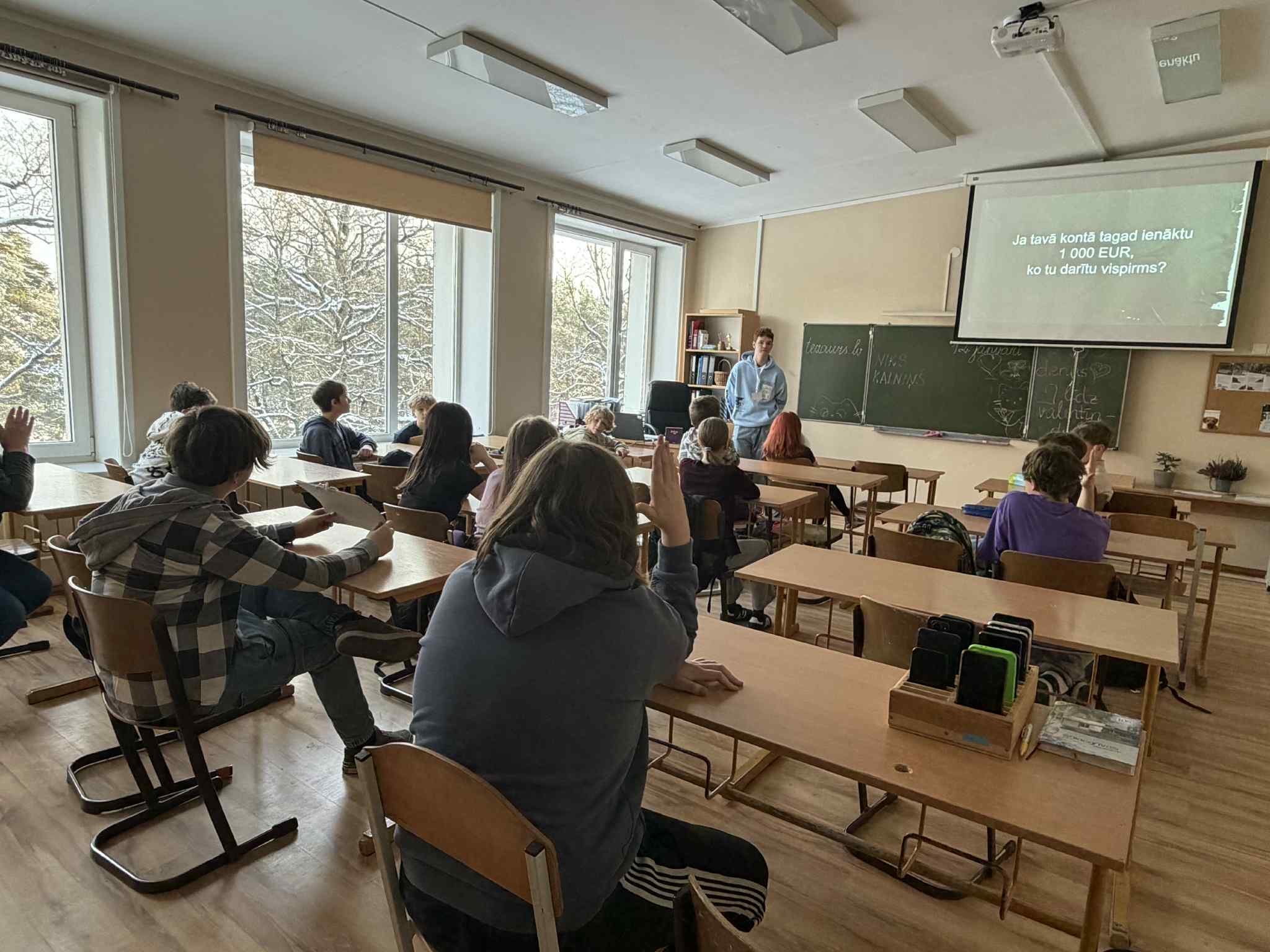 Īpaši interesanta bija praktiskā daļa, kurā skolēniem tika piedāvāts padomāt, ko viņi darītu, ja viņu rīcībā būtu 1000 eiro. Atbildes bija ļoti dažādas – kāds iegādātos jaunu telefonu vai austiņas, cits daļu naudas atdotu vecākiem, lai to ieliktu krājkasē. Vēl citi izvēlētos krāt nākotnei vai iepriecināt savus tuviniekus ar dāvanām. Šis uzdevums palīdzēja skolēniem aizdomāties par naudas patieso vērtību un atbildīgu rīcību ar to.
