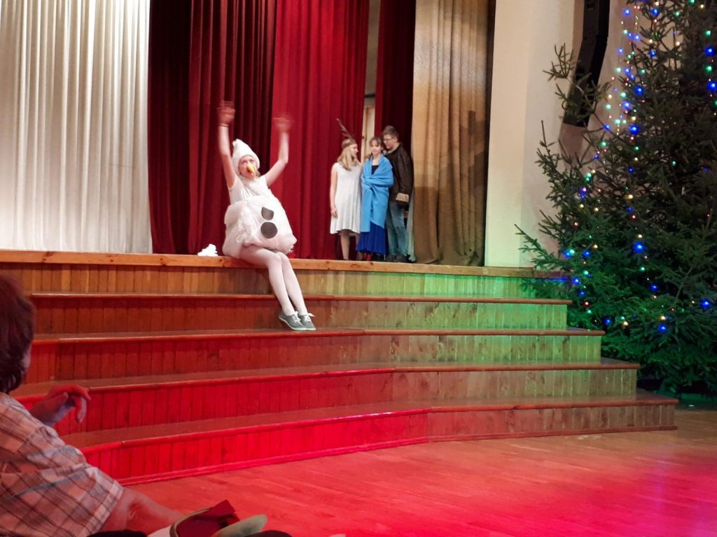 Pēdējo vakaru pirms liecību saņemšanas 5.-12.klašu skolēni pavadīja īpaši. Skolēnu ministrija bija lēmusi par kopīgu Ziemassvētku pasākumu Kultūras namā pie galdiņiem. Pasākuma tēma bija Ziemassvētku filmas. Klases bija izlozējušas filmu un attēlojamo fragmentu. Dažbrīd likās, ka tā ir absolūti neiespējamā misija attēlot šos filmu fragmentus, jo filmai ir citas tehniskās iespējas. Bet skolēni bija pielikuši lielas pūles gan veidojot scenāriju, gan darinot  tērpus, dekorācijas un iestudējot kustības, turklāt katrā klasē atklājās kāds lielisks tēlotājs.  Daudzos filmu fragmentos parādījās kādas iezīmes no ikdienas un reklāmām- SMScredit, veselīgs dzīves veids, skolas adrese ,  Rollton  utt. Filmu vakara vadītājas bija trīs atraktīvas meitenes – Sendija Ivanova, Ance Kalniņa un Justīne Liepiņa, kuras prata gan interesanti pieteikt filmas, gan veiksmīgi aizpildīt tehniski radušās pauzes.  Pirmā filma bija “Ledus sirds”, kuru iesāka skolotāju priekšnesums pēc direktores Sanitas Šlekones veidota scenārija, kur  izcēlās Guntars Ūdris ar divām lomām. Sižetu turpināja 8.b klase, smieklīgākā epizode -“izmeta”no veikaliņa burtiski arī tika attēlota. 6.b klases galvenā loma bija sniegavīram Olafam ,kuru lieliski atveidoja Madara Upīte. Pārliecinoši savu epizodi attēloja 8.a klase- gan ar tēlojumu, lēcieniem, dekorācijām , muzikālajiem iestarpinājumiem.