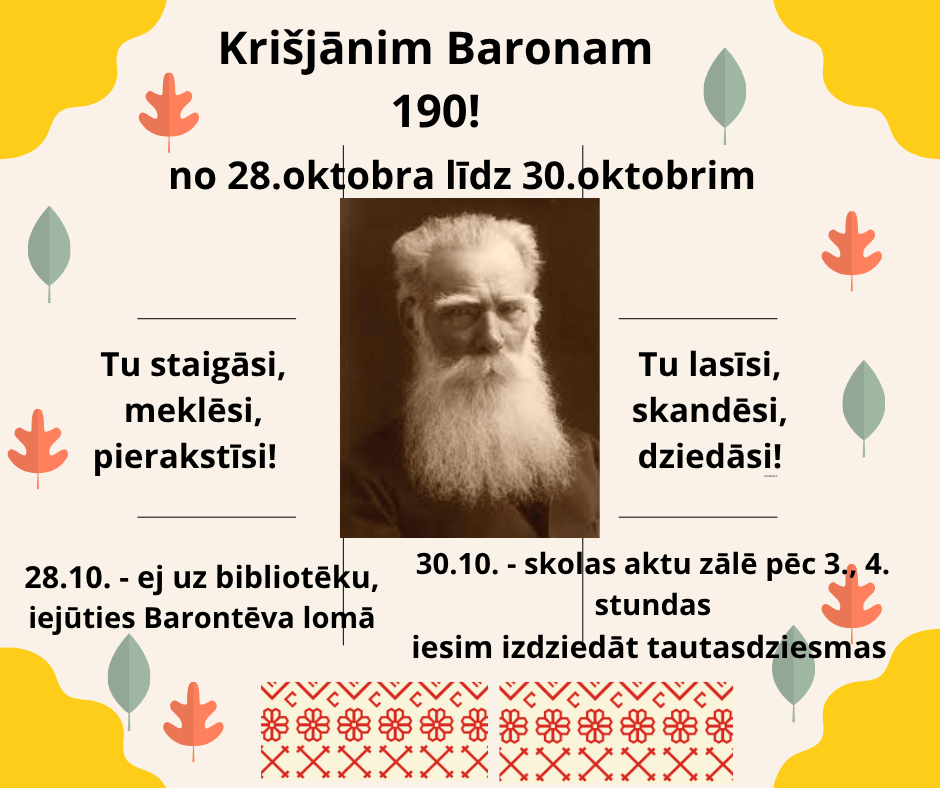 Vispopulārākā mutvārdu folkora – TAUTASDZIESMAS. To vācējam, publicistam, dzejniekam, rakstniekam, pedagogam un jaunlatviešu kustības dalībniekam 31. oktobrī apritēs 190 gadu!