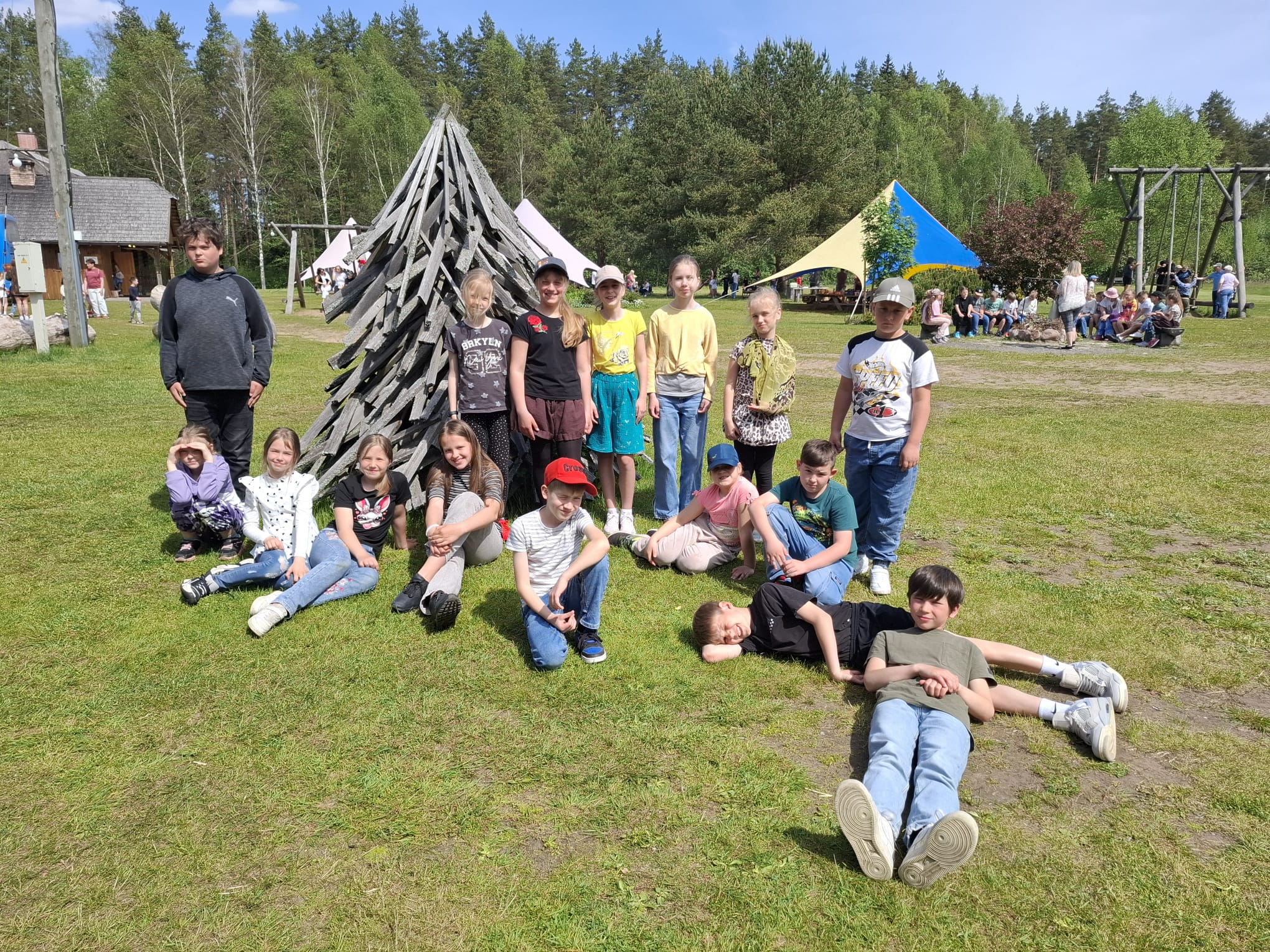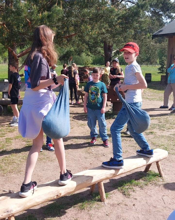 Starp nodarbībām skolēni aktīvi atpūtās, darbojoties ar senajiem un mūsdienu koka spēļu rīkiem.