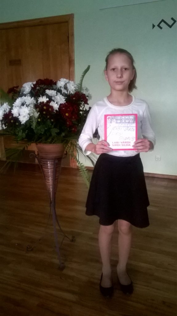 Latviešu valodas aģentūra laidusi klajā grāmatu “Labi vārdi sirdi silda”, kurā apkopoti 2016.gada konkursa labākie skolēnu literārie darbi un zīmējumi.                                                                                                              Konkursa sauklis bija: ”Labi vārdi sirdi silda”, un tas mudināja čakli piedalīties skolēnus no  Latvijas un visas pasaules.                                            Novembrī saņēmām priecīgu ziņu, ka Katrīnas Ķūrenas dzejolis ir atzinīgi novērtēts un ievietots šajā grāmatā.