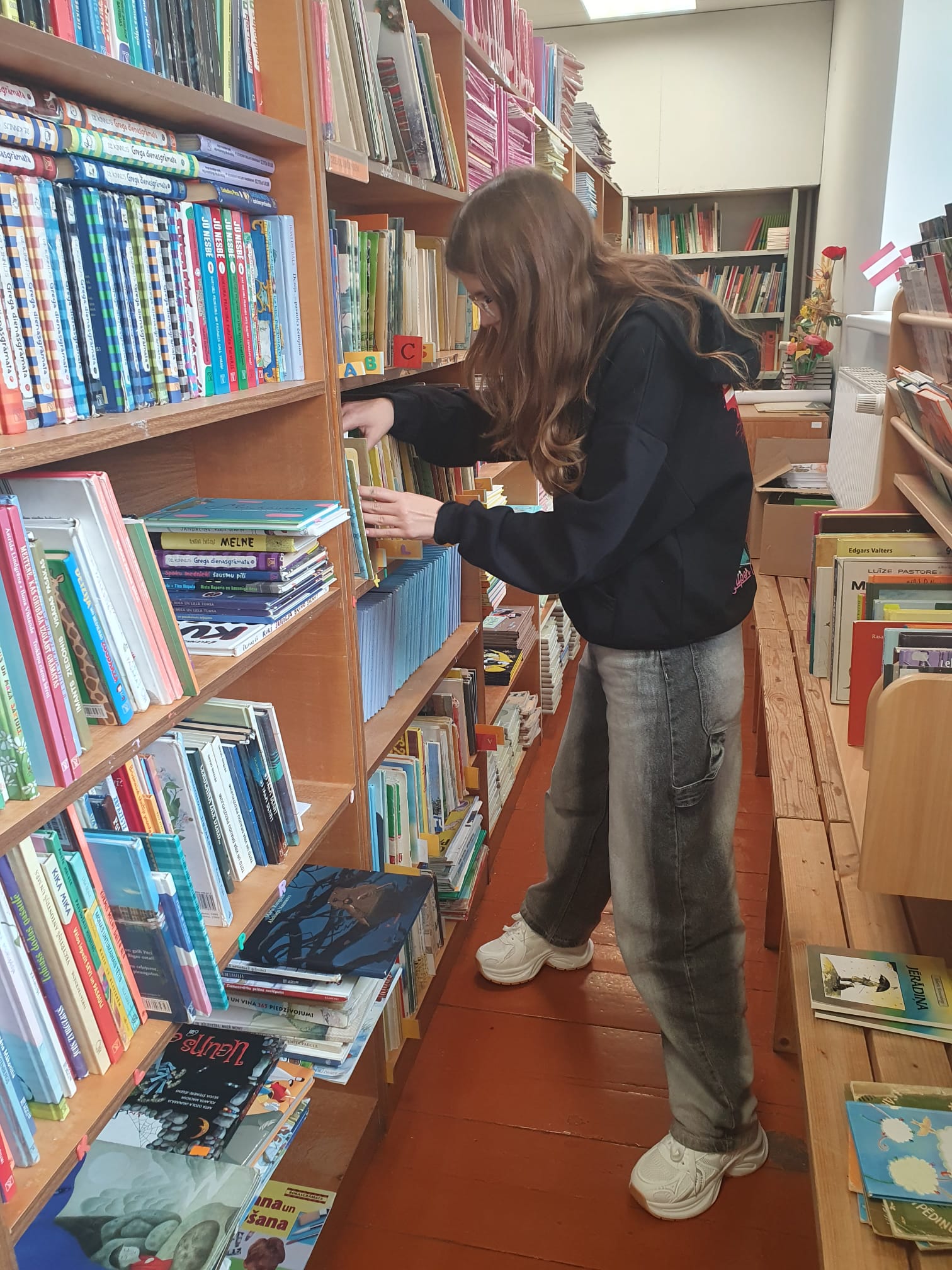 Meitenes devās pie bibliotekāres Vinetas Dances , lai palīdzētu bibliotēkā – tās kārtoja grāmatas alfabēta secībā un palīdzēja pārkārtot grāmatplauktus.