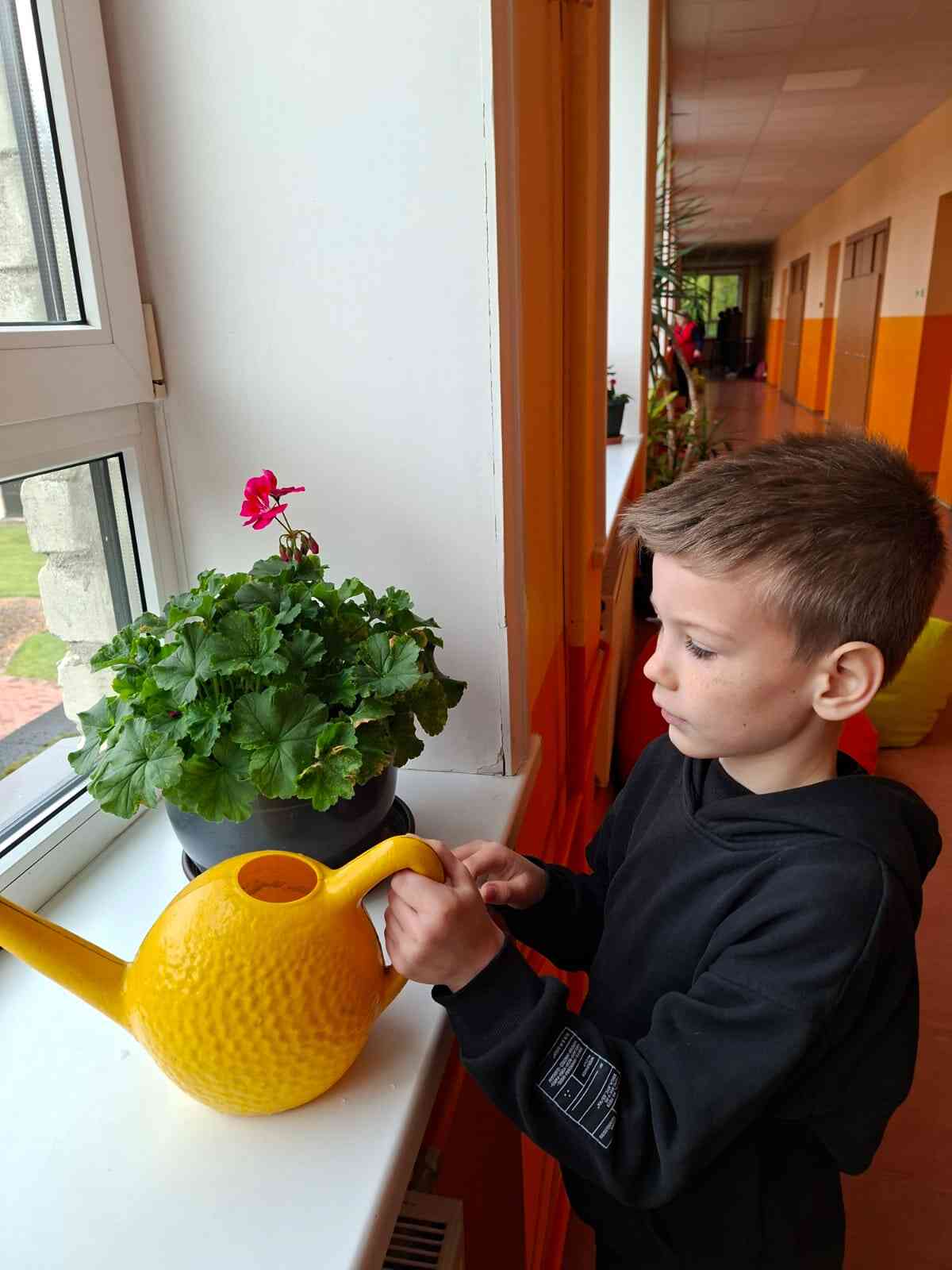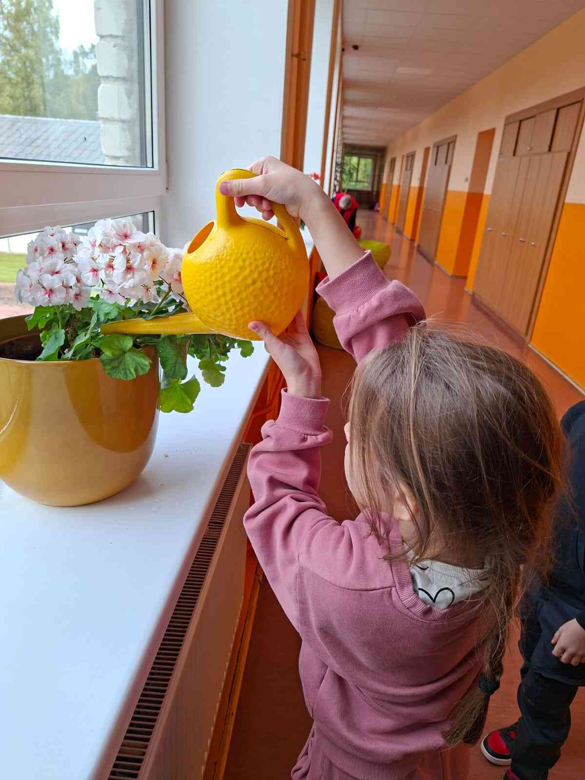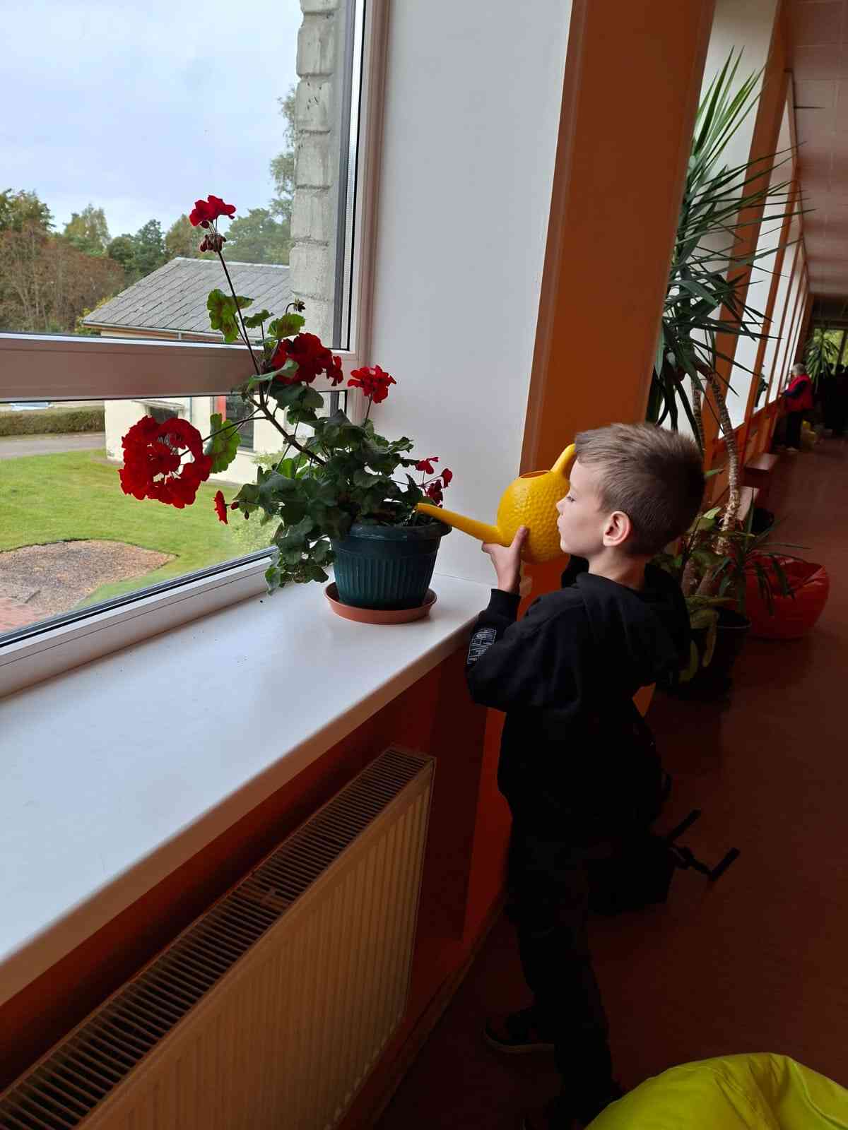 Pārrunājām telpaugu kopšanas nepieciešamību. Audzēkņi bija lepni palīdzēt!