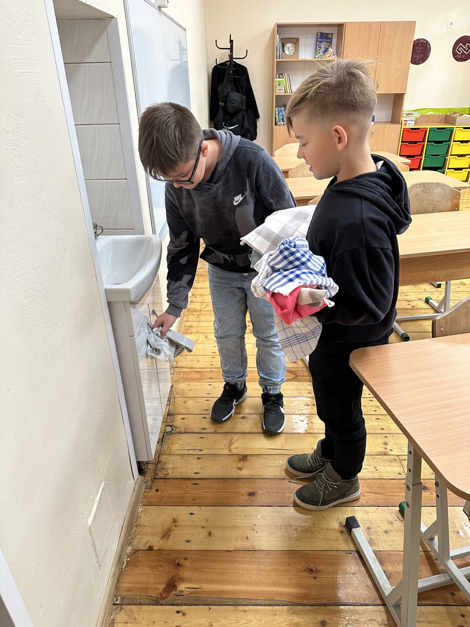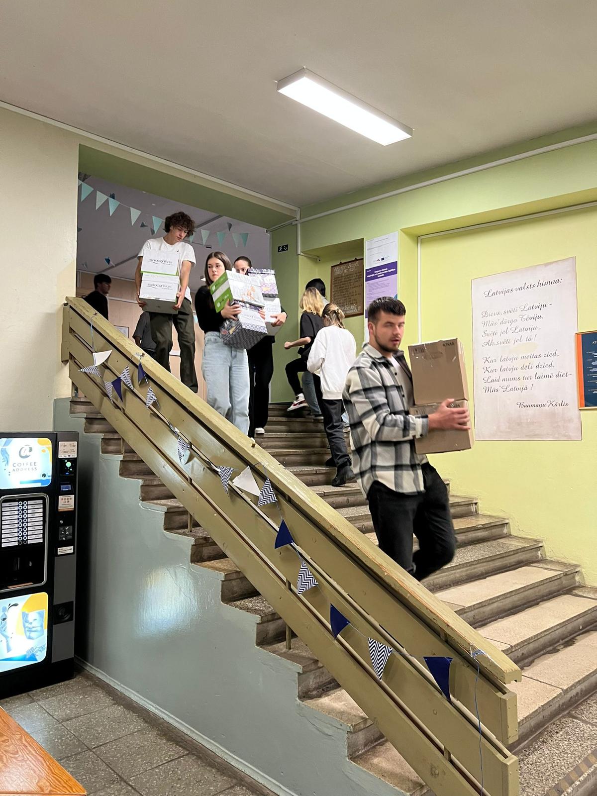 5.a klases zēni – Emīls un Gabriels, nolēma atvieglot 3. stāva apkopējas rītu, savācot netīros dvieļus un izdalot tīros.