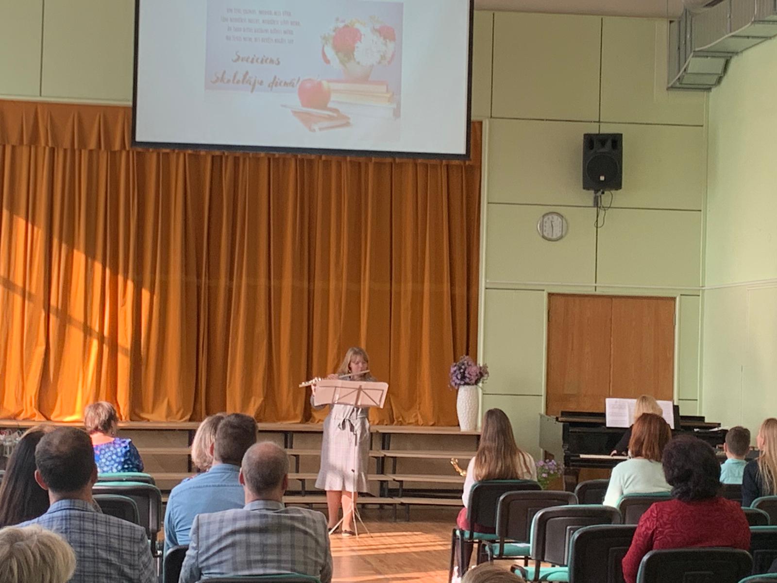9.a klases skolniecei Nellijai Zvejniecei jāsaka paldies ne tikai par šo pateicību interesanto un radošo tekstu, bet arī par noformējumu. Mūs priecēja 9.klašu skaisti izrotātais 2.stāva foajē un sirsnīgie vārdi un citāti Skolotāju istabā, kā arī 10.klases sarūpētie miķelīši un citi rudens zied zālē. 10. un 11.klases bija sagatavojušas apsveikumu, kas bija komandas darbs – 11.klases audzinātāja L.Pelše ierosināja izvēlēties G.Rača dzeju, 10.klases audzinātāja I.Saklaure izvēlējās dzejoļus par mīlestību, priekšnesumu noslēdza “Čikāgas piecīšu ” brīnišķīgā dziesma “Mūsu mīlestība”. Kaut gan skolēni to iepriekš nebija ne dzirdējuši, ne dziedājuši, likās,ka, dziesma viņus bija uzrunājusi dziļi dziļi. Un skanēja kā īstens kora priekšnesums. Fantastiski bija 12.klases ,,skolotāji” ar mācību pārzini Kristeru Kotānu un direktoru Rihardu Bendrātu vadībā, bet lielisku koncertu sniedza Salacgrīvas novada Mūzikas skola. Izjusti savu skaņdarbu uz akordeona nospēlēja M.Eizenbergs, flauta , kā vienmēr, pārliecinoši skanēja L.A.Maurītes rokās, E.Kalniņa šoreiz spēlēja saksofonu, bet virtuozi uz ksilofona straujus ritmus nodemonstrēja V.Majors. Pārsteigums bija skolotāju K.Borozdinas, I.Strantes un L.Jakabsones spēlētais liriskais E.Dogas valsis. K.Borozdina teica šādi: “Skolotājs ir kā elektrība vai internets- tik pašsaprotami, ka tie ir, bet tad , kad tie pazūd, tad saprotam, ko esam zaudējuši……”