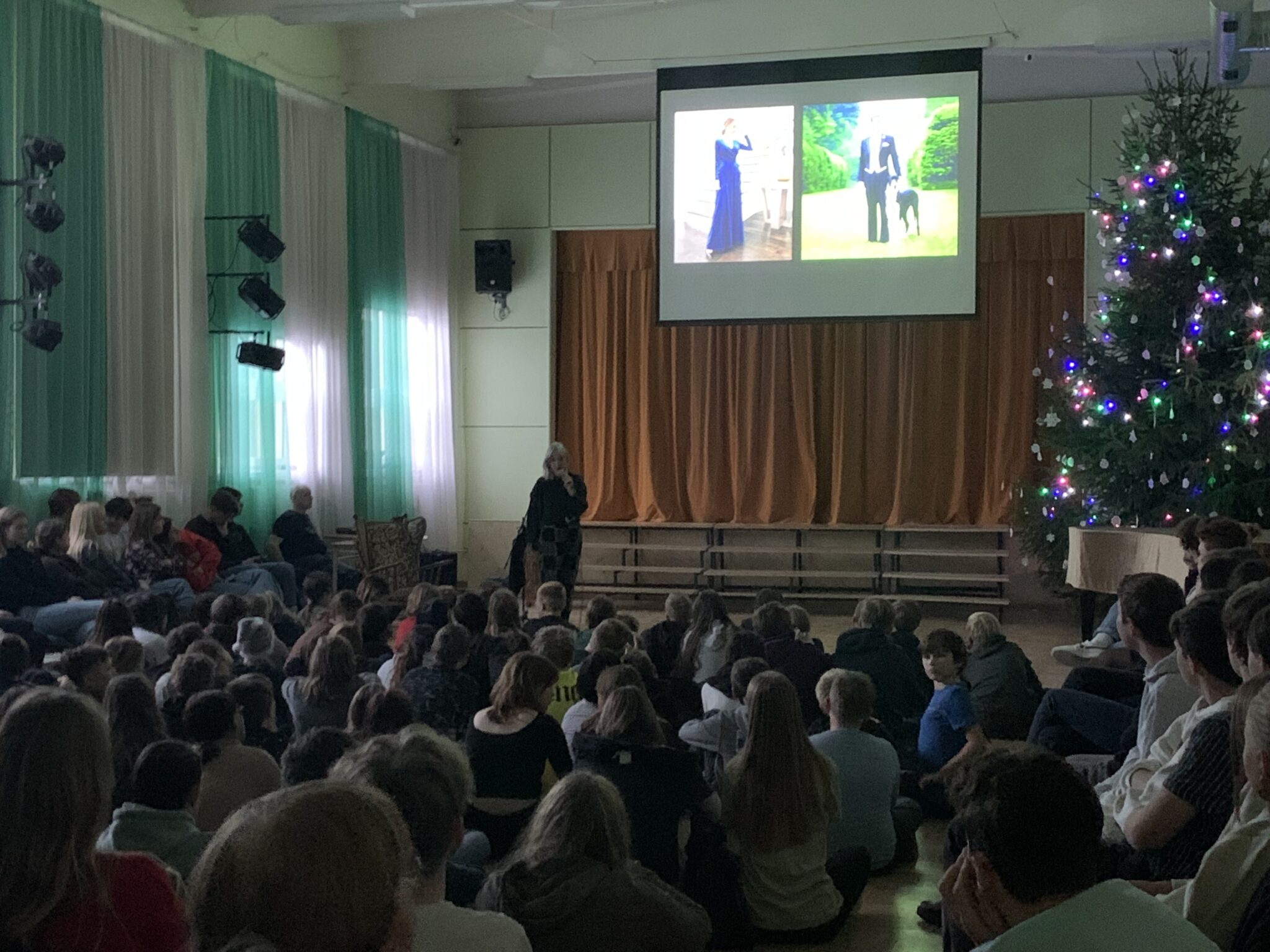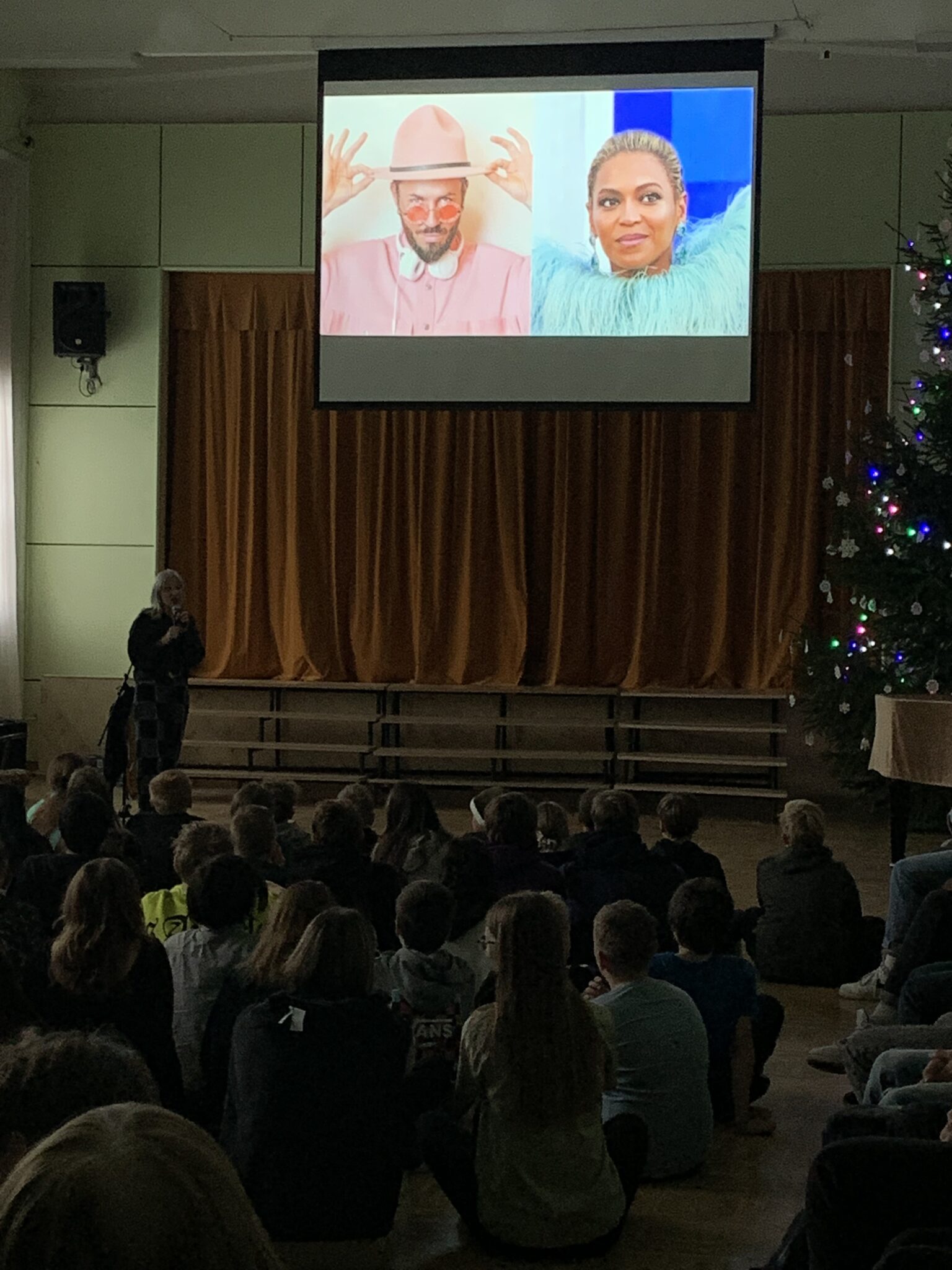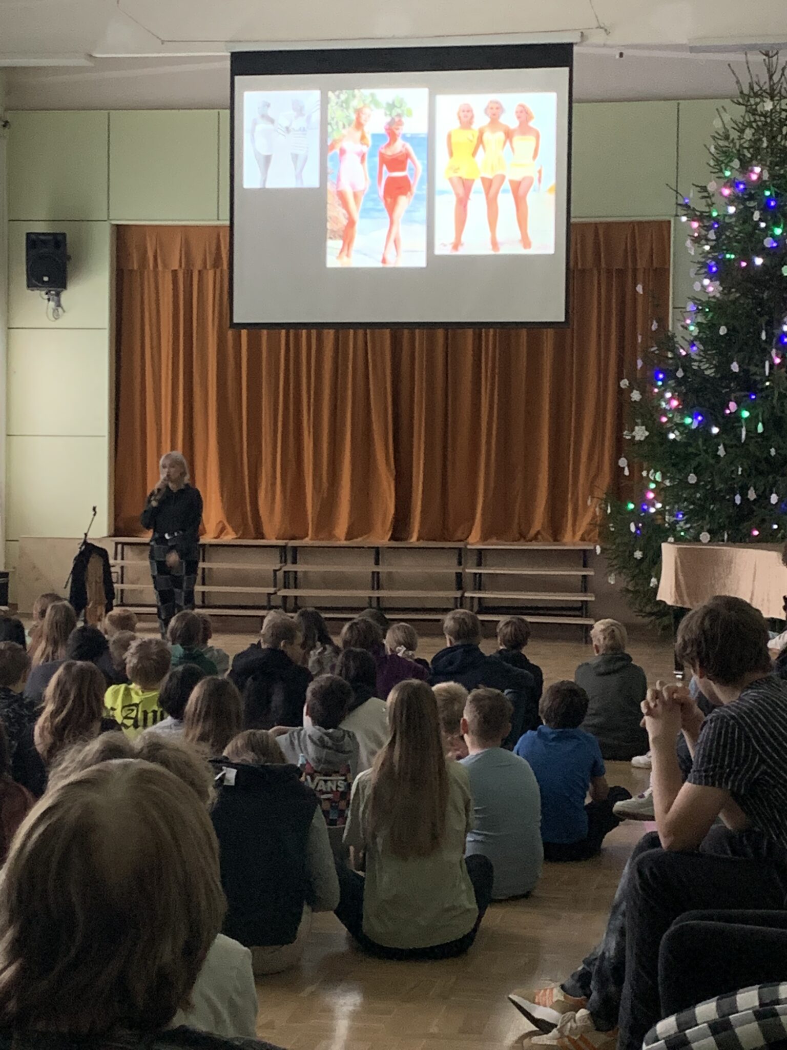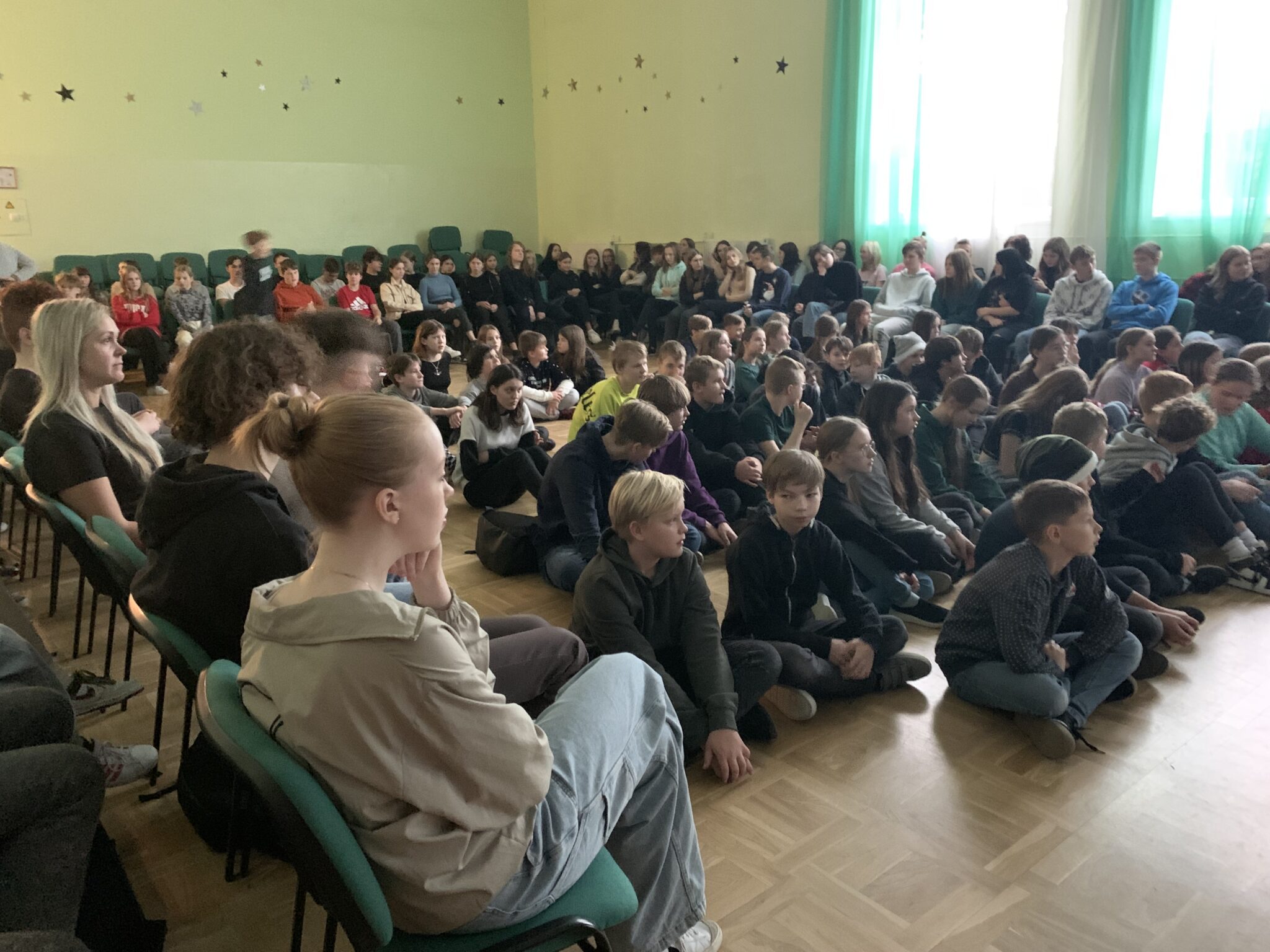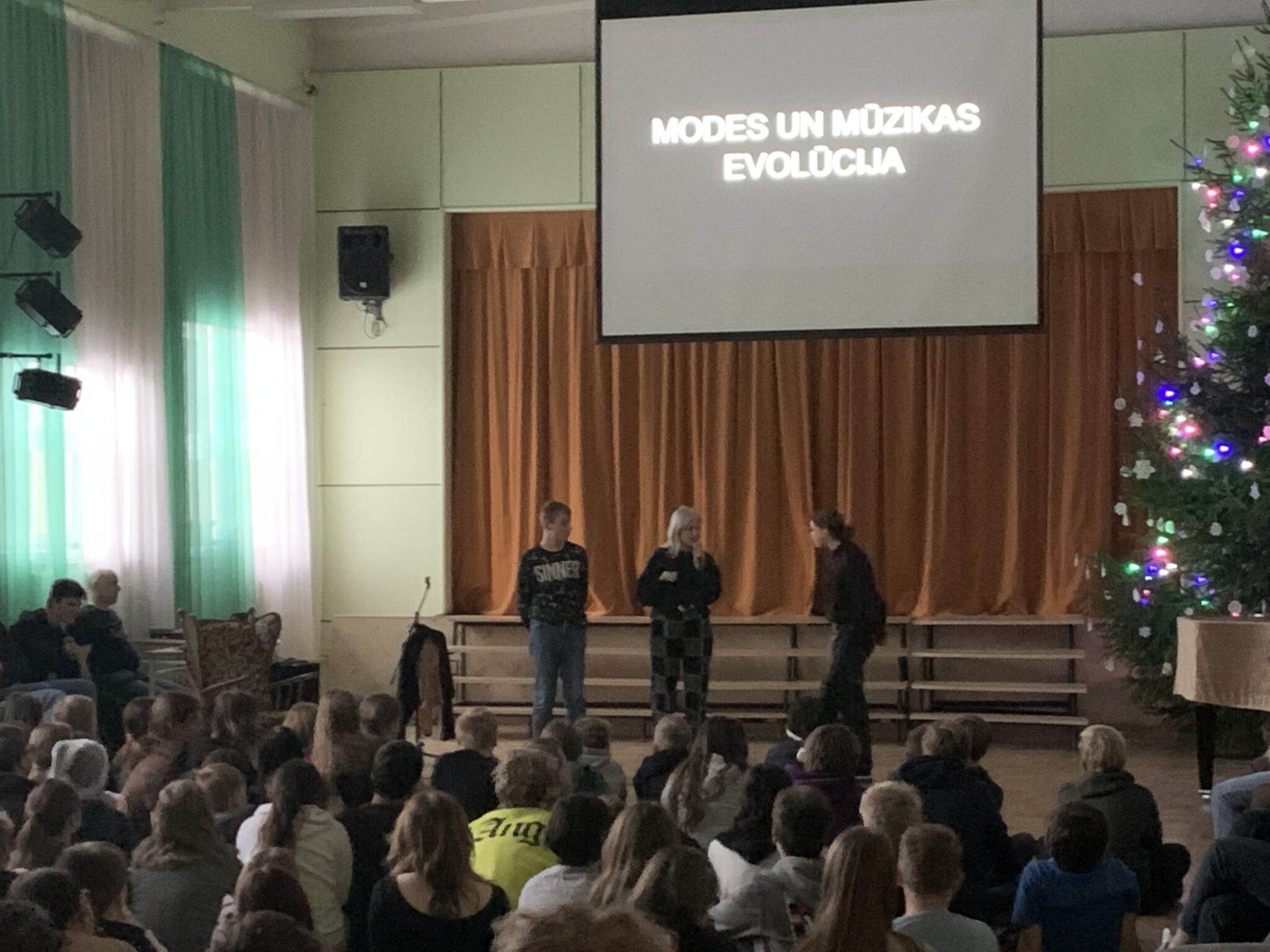 5. – 12. klašu skolēni iepazinās ar dziedātāju KATO un iniciatīvas “Latvijas skolas soma” un skoleniem.lv piedāvāto nodarbību “Modes un mūzikas evolūcija”.